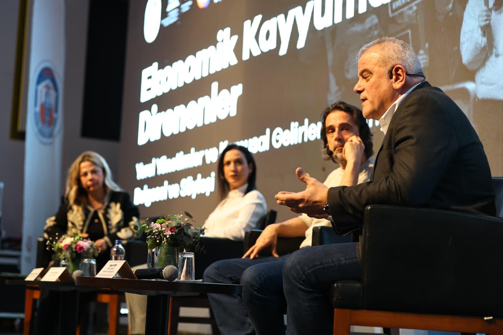 Efes Selçuk Belediyesi’nin uğradığı ekonomik kayba rağmen sosyal belediyecilik anlayışıyla direndiğini vurgulayan Sengel, “Kolektif bir mücadele var. Emekçi, maaşı için; halk, geleceği için sahip çıktı. Sosyal yardımdan, Efeslim Kart’tan, çocuktan ve emekçiden kesmemizi istediler. İlk günden beri şunu söyledik: Ne olursa olsun; belki yarım maaş ödeyeceğiz, belki ücretsiz izinler olacak ama bir emekçiyi işten çıkarmayacağız. İhtiyaç sahibinden dayanışmamızı esirgemeyeceğiz. Çocuklara verdiğimiz ücretsiz kursları kapatmayacağız. Gençlerin ilk cep harçlıklarını kesmeyeceğiz” dedi.