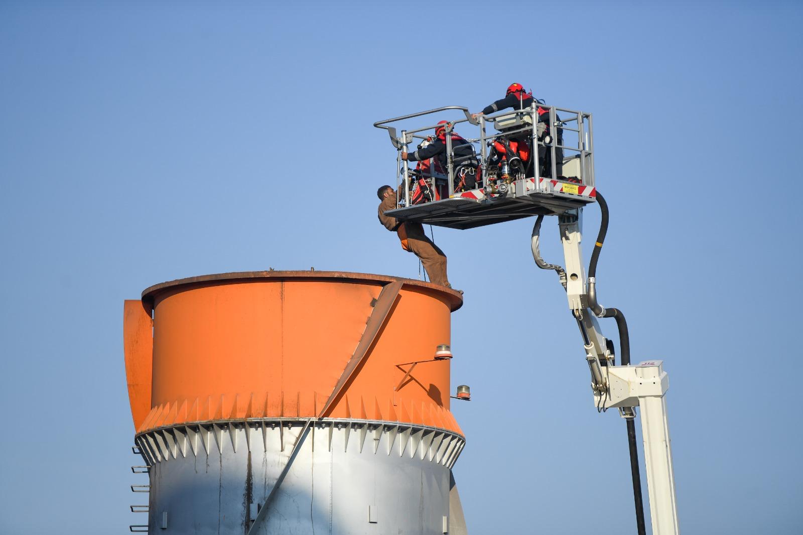 Bornova’da bir fabrikanın bacasına temizlik yapmak amacıyla çıkan iki işçi, iskelenin çökmesi sonucu metrelerce yükseklikte mahsur kaldı. İşçileri kurtarmak için İzmir Büyükşehir Belediyesi İtfaiye Dairesi Başkanlığı ve AFAD ekipleri yaklaşık dört saat süren zorlu bir çalışma yürüttü. Ekipler, 90 metrelik merdivenli aracı kullanarak işçileri kurtarmayı başardı.