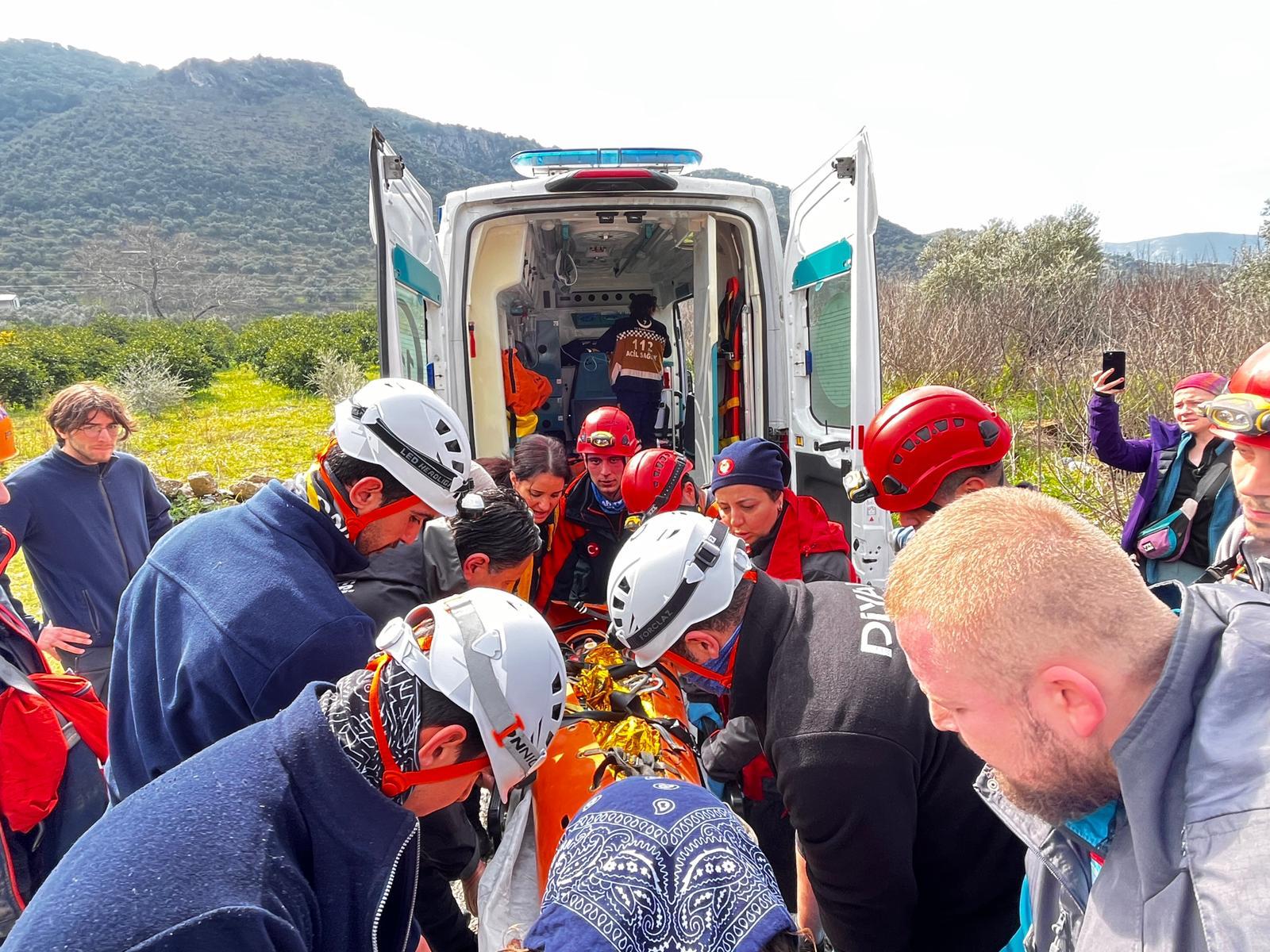Saat 03.30 sıralarında dar ve ulaşımı güç bir noktada mahsur kalan genç için ekiplerden yardım istendi. İhbar üzerine bölgeye İzmir Büyükşehir Belediyesi İtfaiye Dairesi Başkanlığı ekipleri, AFAD, jandarma, sağlık ekipleri sevk edilirken Mağaracılık Federasyonu kurtarma ekipleri de olay yerine geldi. Mağaranın dar yapısı nedeniyle ekipler yaralıya ulaşmakta güçlük yaşadı.