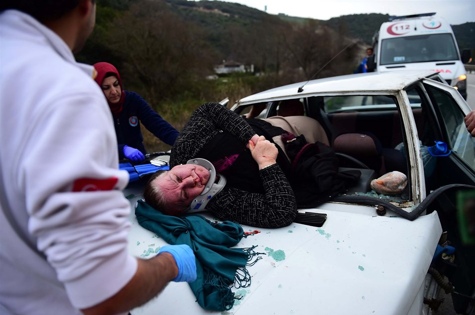 Araç içinde sıkışan Enver Çap, eşinin kurtarılmasını izledi. Gülli Çap, müdahalenin ardından sedyeye alındı, eşi ise itfaiye tarafından araçtan çıkarıldı. Ayakta tedavi edilen Enver Çap, eşinin yanına giderek destek olmaya çalıştı. Ağır yaralı kadın ambulansla Gemlik Devlet Hastanesi'ne sevk edildi. Polis kaza ile ilgili soruşturma başlattı. (DHA)