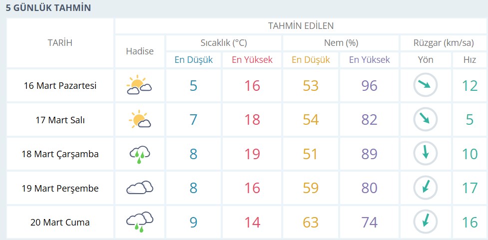 Vatandaşlar yeni haftanın hava durumunu merak ederken İzmir’de haftanın ilk günü parçalı bulutlu 16 derece olacak. Gece sıcaklığı ise 5 dereceye kadar düşecek.