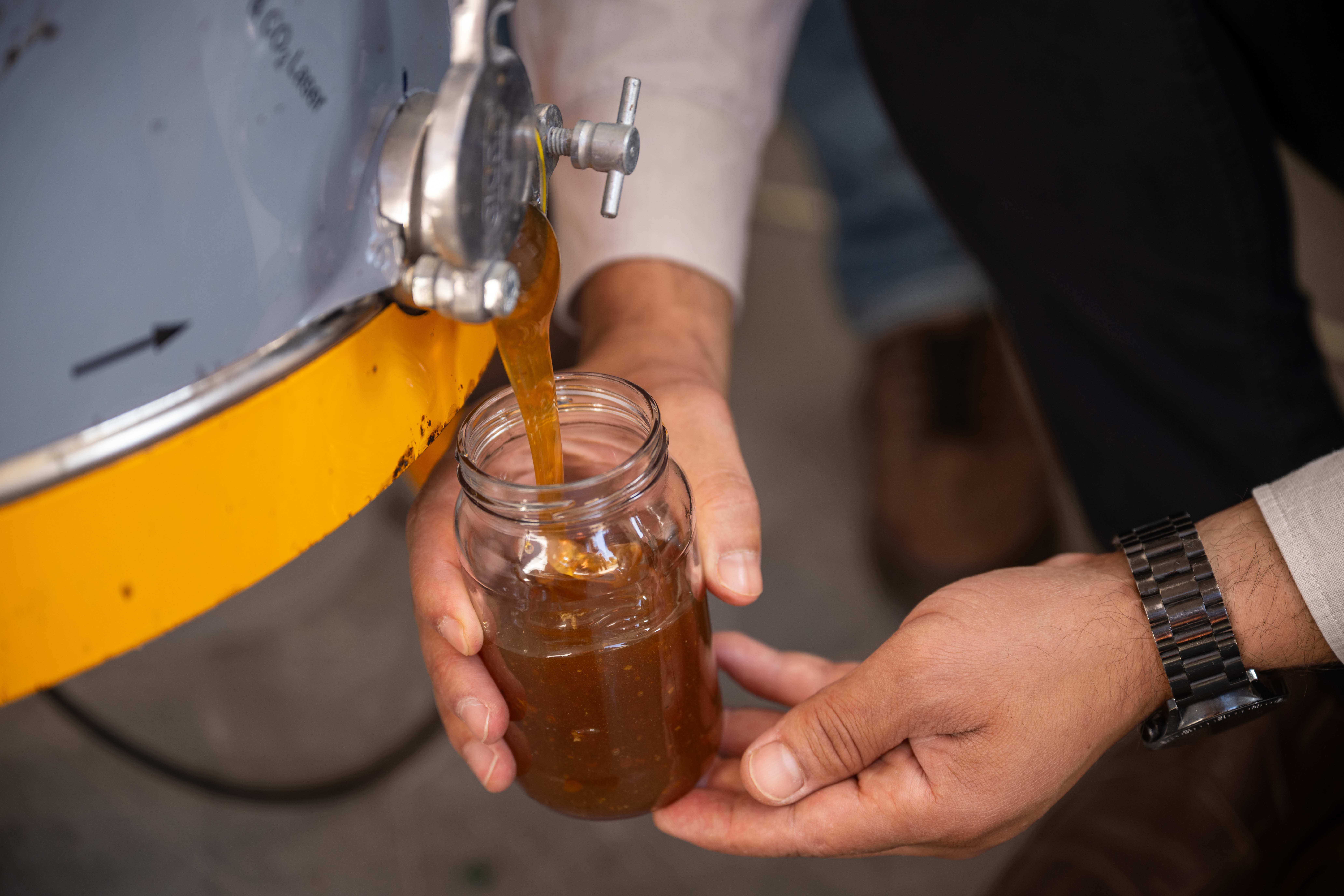Bornova Belediyesi’ne ait kovanların yanı sıra kursiyerlerin kovanlarından da elde edilen ballar, düzenlenen etkinlikle hep birlikte hasat edildi. Etkinlikte arıcılar, hem emeklerinin karşılığını almanın sevincini yaşadı hem de üretimin önemini bir kez daha vurguladı.