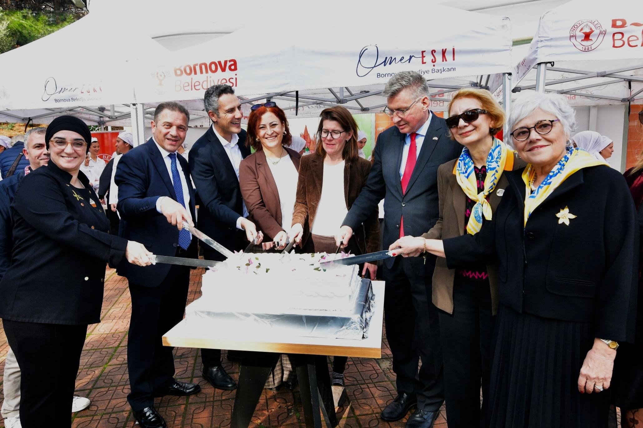 Bornova Belediyesi Kültür, Sanat ve Sosyal İşler Müdürü Yasin Barut, Bornova Belediye Başkanı Ömer Eşki’nin 6 Şubat deprem anma programları nedeniyle törene katılamadığını ve selamlarını ilettiğini söyledi. Projenin uzun soluklu ve çok paydaşlı yapısına dikkat çeken Barut, özellikle kadınların güçlenmesine yönelik projelere destek vermeyi sürdüreceklerini ifade etti.