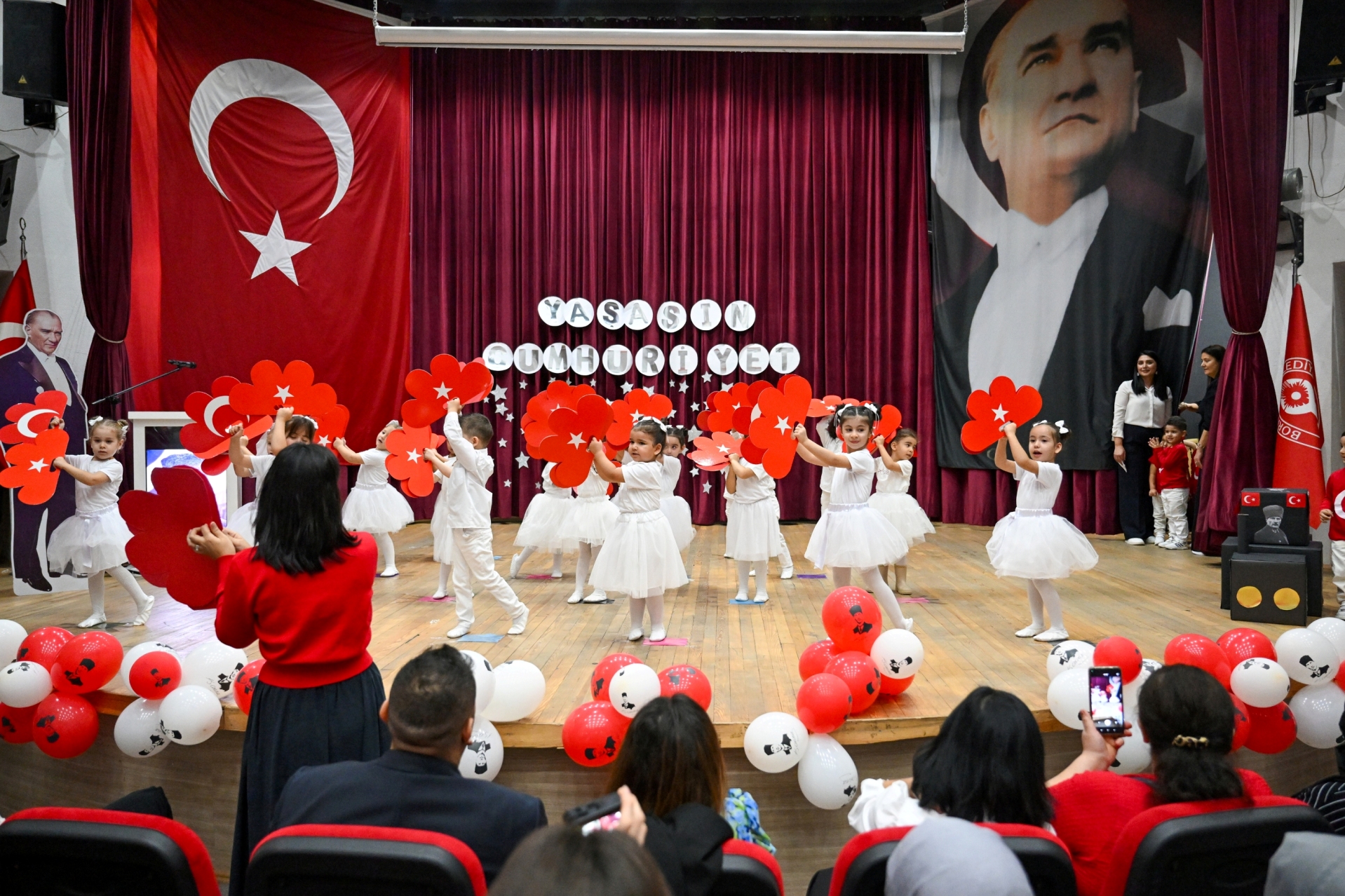 Ailelerinin yoğun ilgi gösterdiği etkinlikte, minikler performanslarıyla büyük beğeni toplarken veliler de cep telefonlarıyla bu özel anları ölümsüzleştirdi. Salonda renkli görüntüler oluştu, Cumhuriyet coşkusu miniklerin enerjisiyle birleşti.