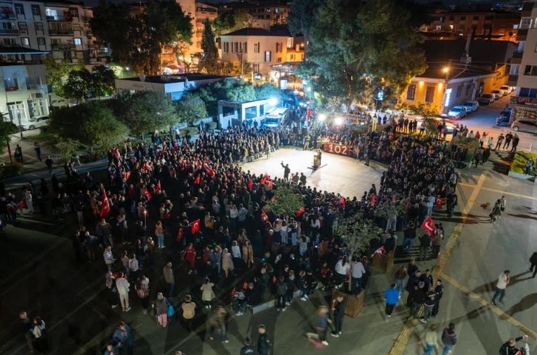 Yaşlısından gencine, yediden yetmişe tüm Bucalılar, ellerinde meşalelerle hep bir ağızdan marşlar söyleyerek yürüdü. Caddeleri gelincik tarlasına döndüren yürüyüş, Işılay Saygın Meydanı'na kadar sürdü.
