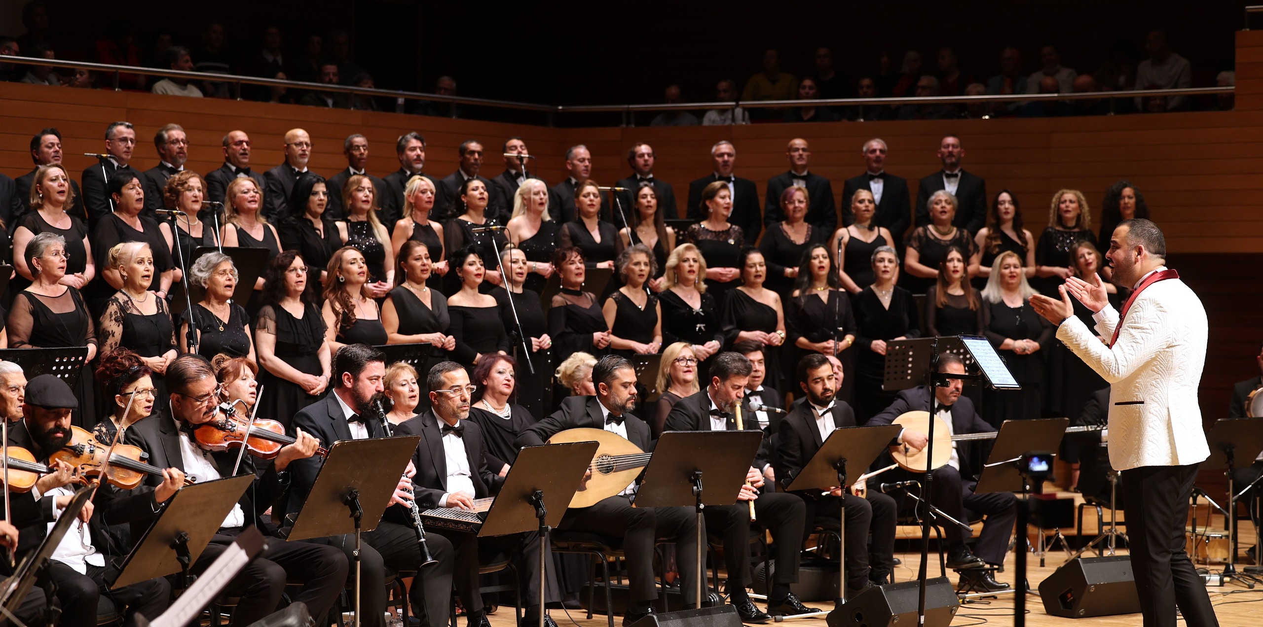 İzmir Büyükşehir Belediyesi Klasik Türk Müziği Korosu'nun sunduğu bu özel etkinlik halka açık ve ücretsiz olarak düzenlenirken, salonu dolduran sanatseverler hep bir ağızdan şarkılara eşlik etti.