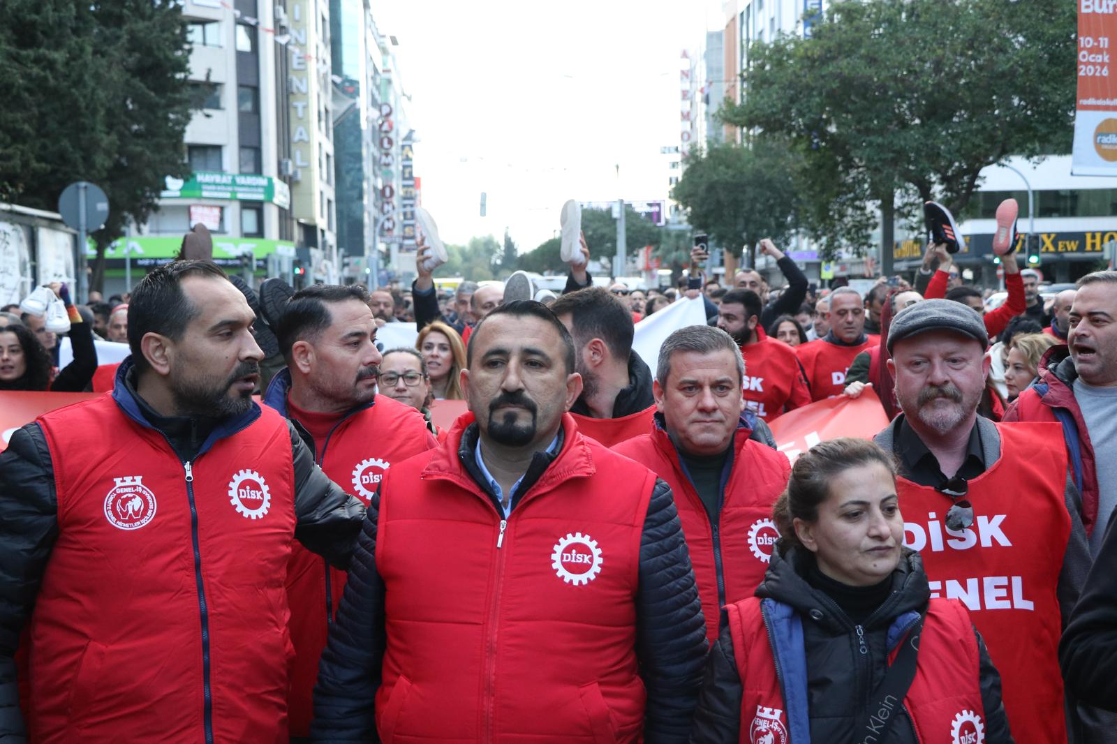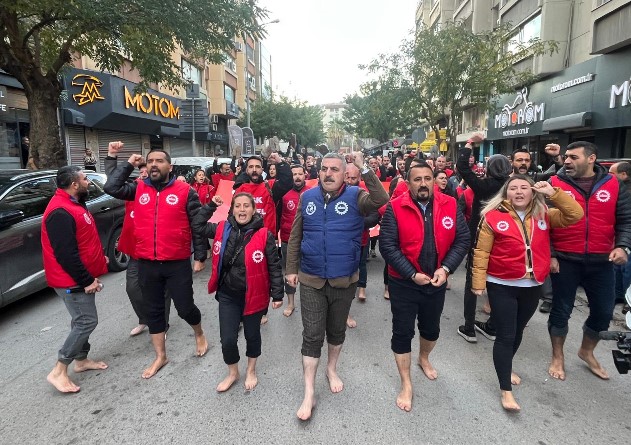İşçiler “Çıplak maaşa, çıplak ayak" diyerek ile başlattıkları eylemde, sendika binasından Kültürpark’a yürüdü.