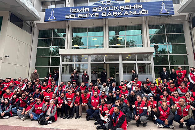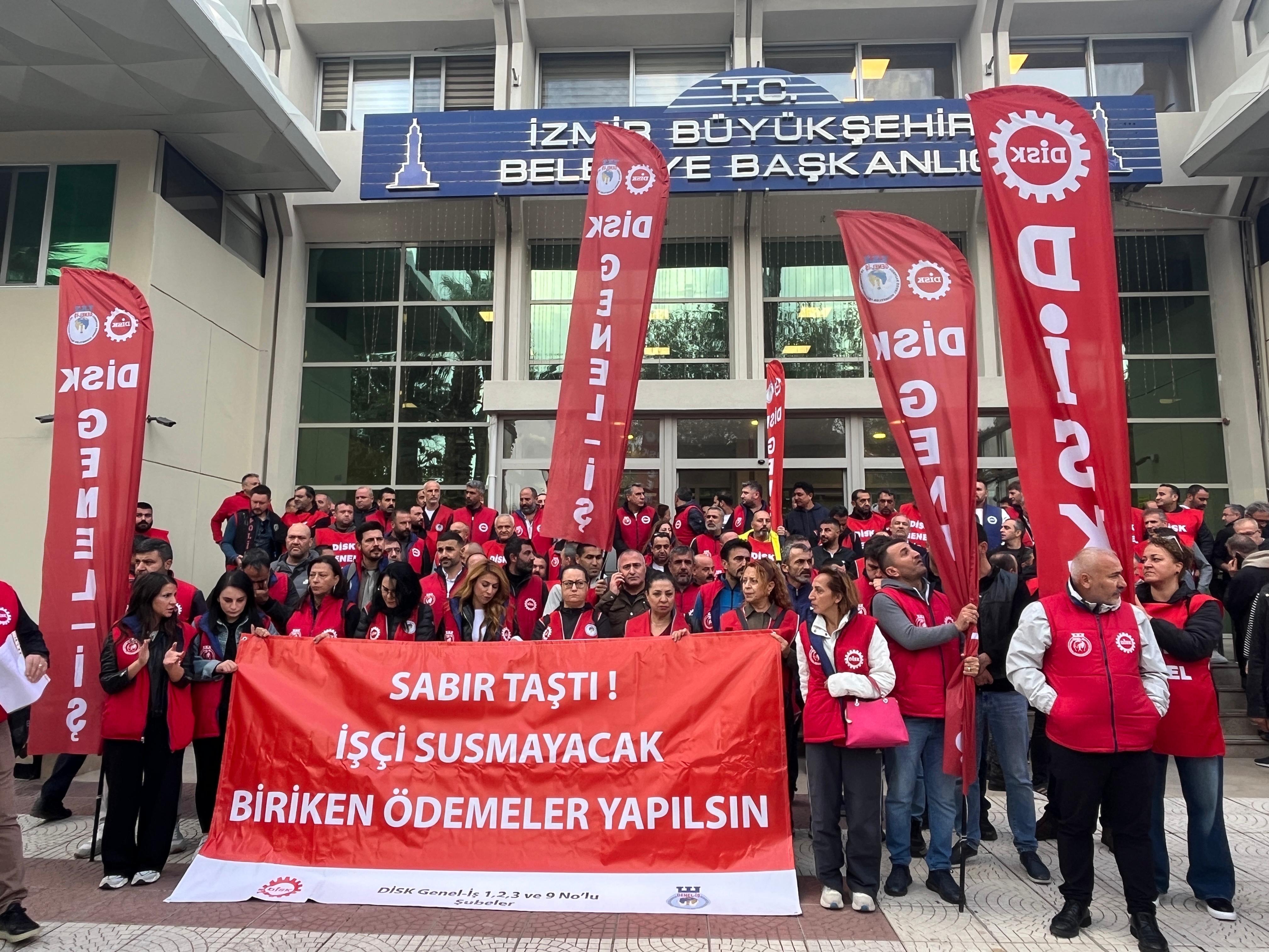 Asena TUNCA/GERÇEKİZMİR - İzmir Büyükşehir Belediyesi’nin iştiraklerinde çalışan İZENERJİ, İZELMAN ve İZFAŞ emekçileri, üç aydır ödenmeyen sosyal hakları için eylem yaptı.