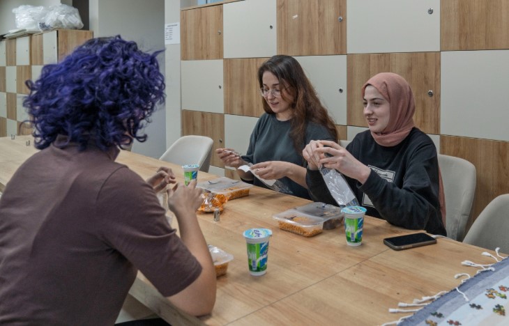 Denizli’den gelen Dokuz Eylül Üniversitesi Mimarlık Bölümü öğrencisi Sümeyra Özmen, “Benim için konaklama çok büyük bir sorun ve soru işaretiydi. Burasını bulduğumda başvurumun kabul edilip edilmeyeceği konusunda endişe ettim. Geri dönüş yapılınca çok mutlu oldum. Bana bu imkân verilmeseydi ev tutacaktım, o da bana büyük bir maliyet olacaktı. Burası bana çok iyi bir kapı oldu, çok teşekkür ederim. Sadece barınma imkânı için bile 2 bin lira mükemmel bir fiyat. Böyle bir yerde kalabildiğim için çok mutluyum. Sabah ve akşam yemek hizmeti de sunuluyor. Yemekleri beğeniyorum, besin kalitesi yüksek gıdalar sunuluyor. Başka bir yurtta konaklama imkânı olmayan bir öğrenci olarak iyi ki burası karşıma çıkmış. Barınma sorunu benim için büyük bir stres sebebiydi. Burasının büyük bir nimet olduğunu düşünüyorum” diye konuştu.