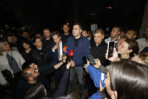 "Bir toplantı yaptık. Yarın 18'deki yapacağımız mitingde neler yapacağımız ile ilgili kendi aramızda kısa bir istişare toplantısı gerçekleştirdik. Yarın büyük bir kalabalıkla buradan yapılan hukuksuz işleme karşı duracağız. Arkadaşlarımıza katılımlardan dolayı teşekkür ediyoruz. Bu akşam Cemil Başkanımız, vekillerimiz ve belediye başkanlarımız, ilçe başkanlarımızla beraber sabaha kadar nöbet tutmaya devam edeceğiz. Bizler bu yapılan hukuksuzluğu kabul etmiyoruz. Bu Cumhuriyet Halk Partili belediyeye yapılmış bir eylem değildir, bir işgal değildir. Bu İzmir’deki gençlerimize, kadınlarımıza yapılan bir haksızlıktır. Biz bu haksızlığı kabul etmiyoruz. Buradaki mücadelemize devam edeceğiz. Hepinize geldiğiniz için teşekkür ediyoruz. Sağ olun, var olun."