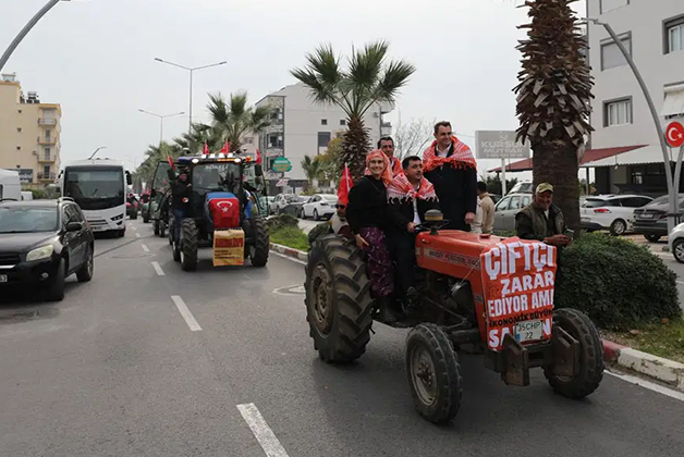 İzmir’in Menderes ilçesine bağlı Gümüldür’de mandalina üreticileri traktörleriyle meydanlara indi. Gümüldür Belediye Garajı’ndan başlayan eylemde üreticiler, traktörleriyle kortej halinde ilerleyerek Gümüldür Pazar Yeri’nde toplandı. Çiftçiler, artan mazot, gübre, tohum ve ilaç maliyetleri karşısında ürün fiyatlarının yetersiz kaldığını belirtti.