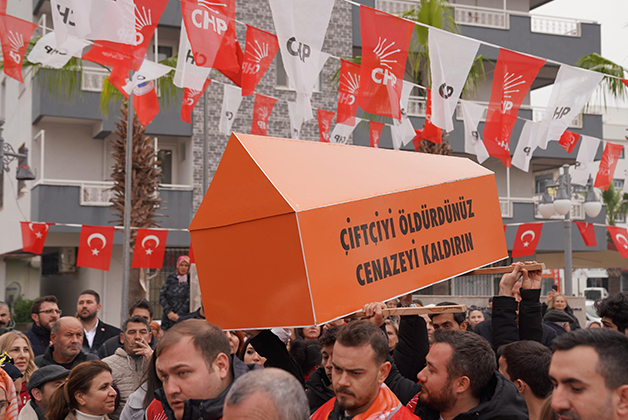 Eylemde “Çiftçiyi öldürdünüz, cenazeyi kaldırın” yazılı tabut taşındı. Üreticiler, bir yıl boyunca verdikleri emeğin karşılığını alamadıklarını ifade etti. Eyleme CHP PM üyeleri Erhan Adem ve Ednan Arslan, CHP İzmir İl Başkanı Çağatay Güç, Seferihisar Belediye Başkanı İsmail Yetişkin, Torbalı Belediye Başkanı Övünç Demir, ilçe başkanları, gençlik ve kadın kolları ile çok sayıda yurttaş katıldı.