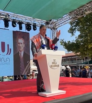Efe Can TAN/GERÇEKİZMİR - Urla’nın 2 bin 600 yıllık Geleneksel Bağbozumu Şenliği başladı. Açılış töreninde konuşma yapan İzmir Büyükşehir Belediye Başkanı Tugay sözlerinin bir bölümünde programa katılan Urla Kaymakamı Mustafa Gözlet’e dönerek, “Alkışlamayan kim varsa bu ülkeye ve bu millete sahip çıkmaya inanmıyor demektir” dedi. Kaymakam Mustafa Gözlet Tugay’ın alkışlama çağrısına yanıt vermedi.