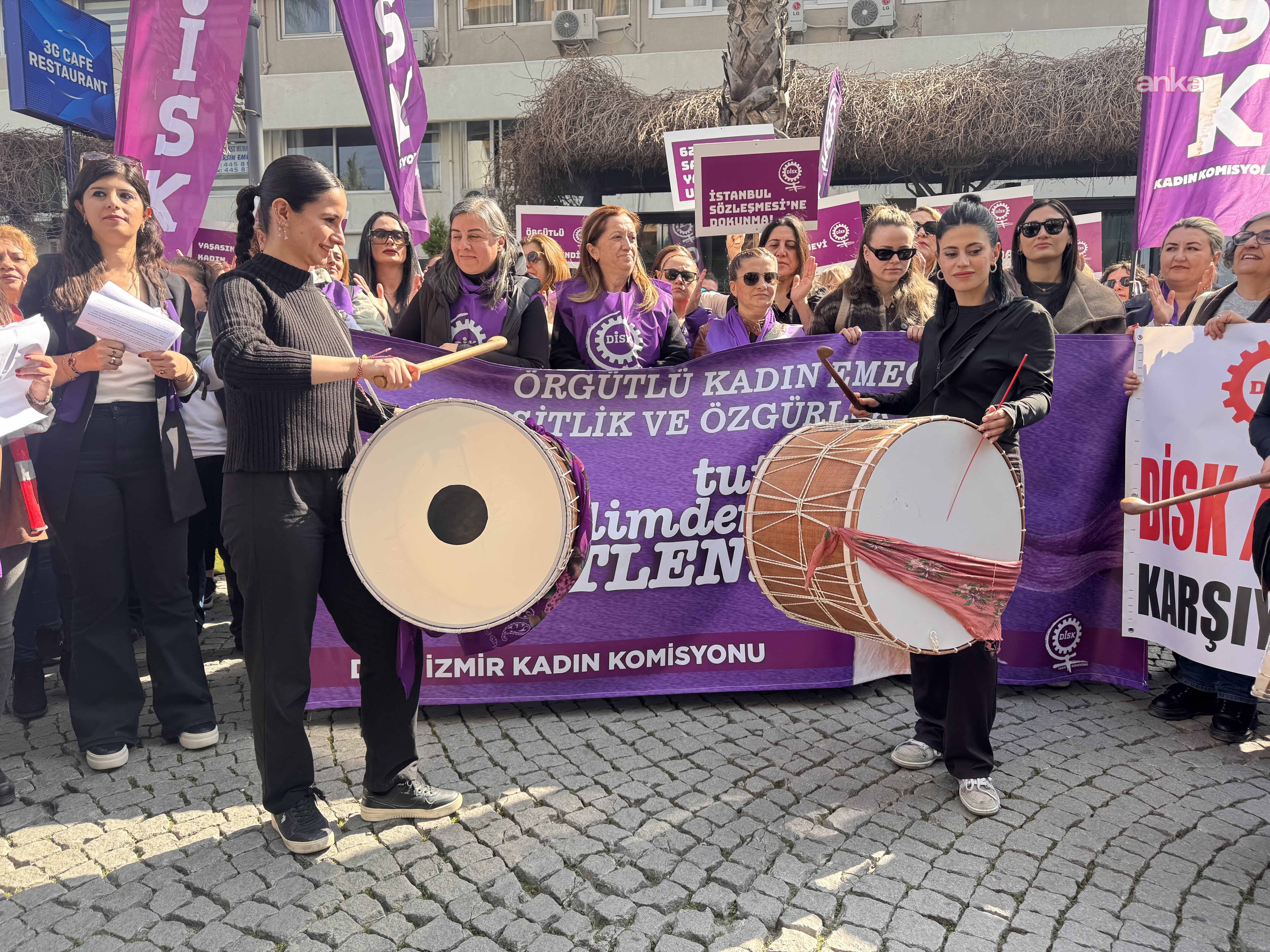 "Bu 8 Mart’ta DİSK’li kadınlar olarak bu tarihsel sorumluluğu ve görevi üstleniyoruz. Bugün bu ülkede evde, işte çalışan, üreten, hayatı yeniden üreten bütün işçi kadınlara, bütün kız kardeşlerimize bir çağrı yapıyoruz, 'Tut elimden, örgütlen' diyoruz. Tam da bu taleplerle bütün kız kardeşlerimizi sendikalı olmaya, DİSK’li olmaya bu mücadeleye çağırıyoruz. Neredeysek orada. Evde, iş yerinde, fabrikada, atölyede, tezgah başında, belediyede, hastanede, neredeysek orada yan yana geleceğiz. Birbirimizin elinden tutacağız ve örgütleneceğiz. Sendikalı olacağız. DİSK’li olacağız. Sendikalarımızla ve DİSK’le daha fazla görev alacağız. Söz ve karar sahibi olacağız. Çünkü bu adaletsiz düzeni, bu eşitsiz düzeni, kadınlar olarak, bizim yaşam hakkımıza kasteden bu düzeni değiştirecek en önemli güçlerden birisi örgütlü kadınlardır, örgütlü işçi kadınlardır ve onun biricik örgütü DİSK’tir. Bütün kız kardeşlerimizi, bütün iş kadınları ve emekçi kadınları yan yana, omuz omuza bu mücadelede birlikte olmaya çağırıyoruz." (ANKA)