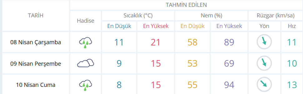 Cuma günü sağanak yağışın beklendiği kentte sıcaklıklar yine 15 derece olacak.