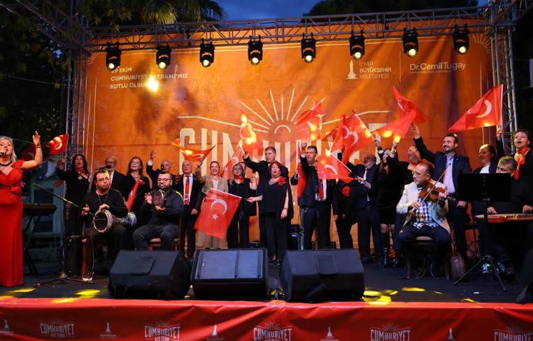 İzmir Büyükşehir Belediye Başkanı Cemil Tugay ise Cumhuriyet Bayramı’nı İzmir’in dört bir yanında coşkuyla kutlamaktan büyük mutluluk duyduklarını belirtti. İzmir’in hem Türkiye’nin kurtuluşunun hem de Cumhuriyetin kuruluşunun kenti olduğunu vurgulayan Başkan Tugay; “İzmirlilerin babaları, dedeleri bu topraklarda düşmanla yiğitçe savaşmışlardır. Bu nedenle İzmirli olmakla gurur duyarız. Atatürk, milletinin onuru için demokrasiyi armağan etti ve herkesi eşit vatandaş olarak kabul etti. O yüzden Cumhuriyet kimsesizlerin kimsesidir. Bizlere düşen görev, devraldığımız bu büyük mirası korumak ve bizden sonraki nesillere daha güçlü bir şekilde teslim etmektir” dedi.