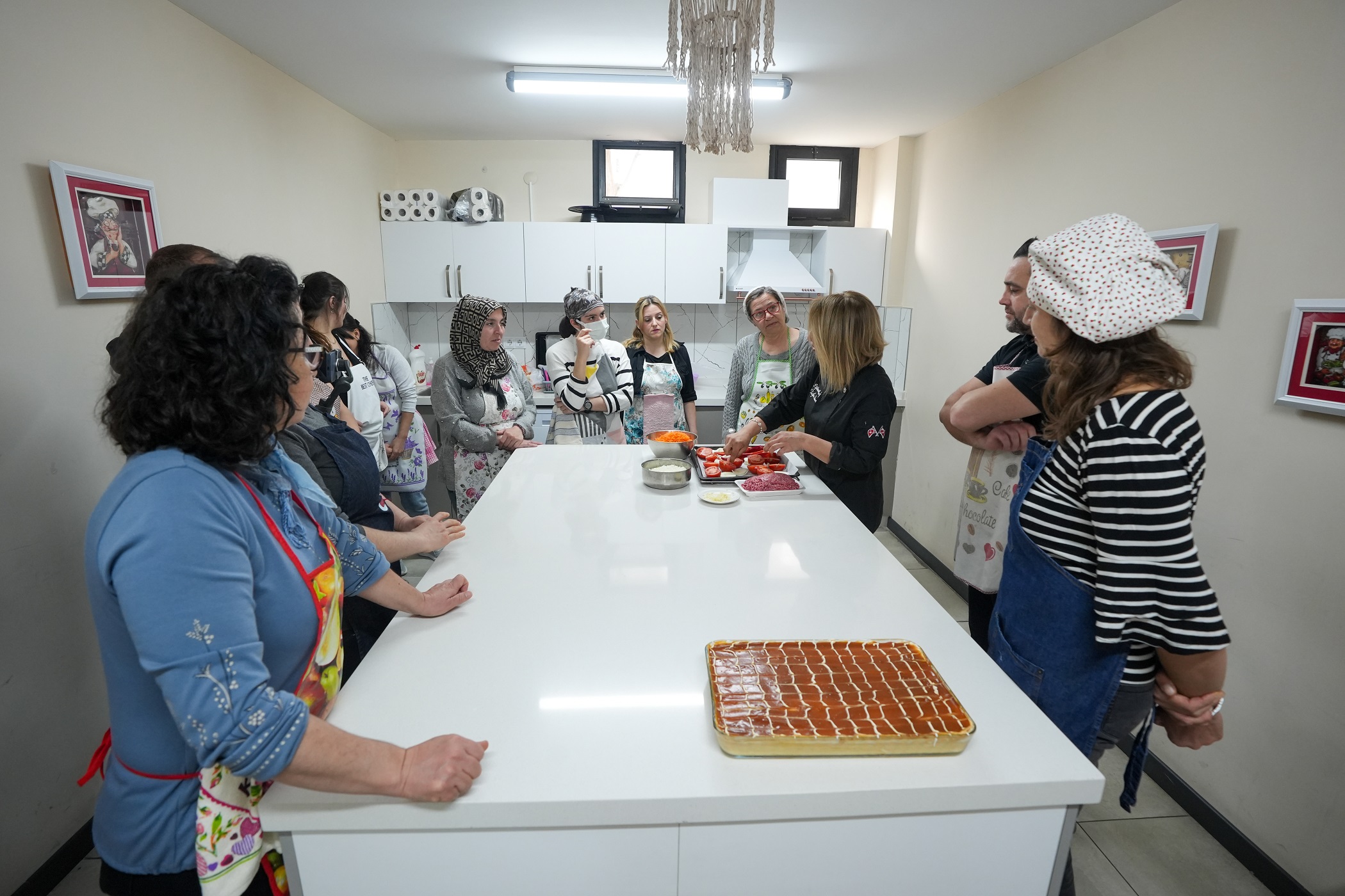 Gaziemir Belediyesi, Sarnıç Toplum Merkezi’nde düzenlediği Mutfak Atölyesi ile yurttaşların Türk mutfağının zengin yemek çeşitlerini öğrenmelerine ve mesleki becerilerini geliştirmelerine katkı sağlıyor. Atölyeye katılan kursiyerler, alanında uzman eğitmen eşliğinde hem geleneksel hem de modern Türk mutfağına ait yemeklerin yapımını uygulamalı olarak öğreniyor.