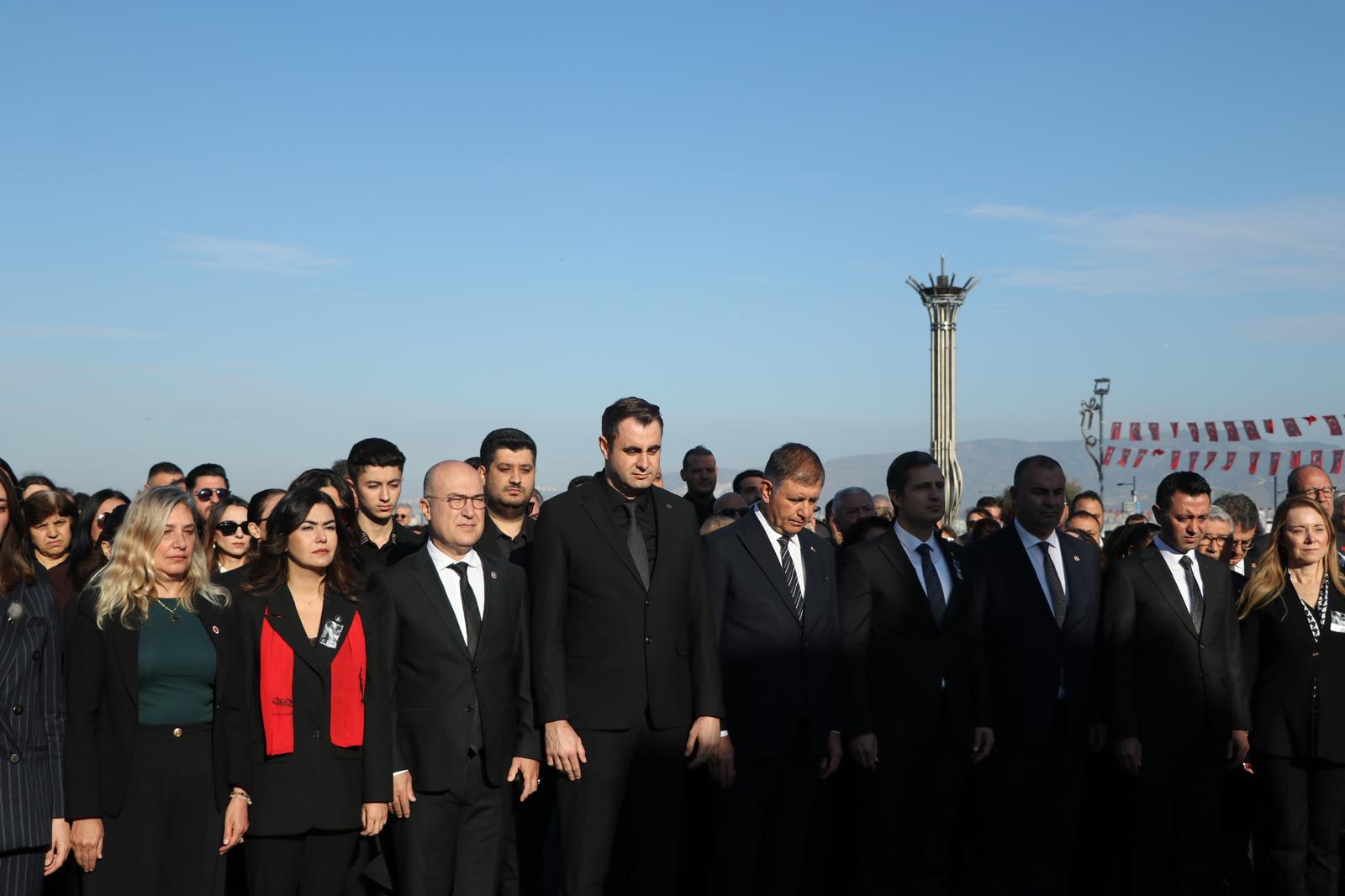 CHP İzmir İl Örgütü, Ulu Önder Mustafa Kemal Atatürk'ün ebediyete intikal edişinin 87. seneyi devriyesinde, çelenk töreni gerçekleştirdi. Törende konuşan İl Başkanı Çağatay Güç, "Gazi Mustafa Kemal Atatürk’ü kalbimizden silemezsiniz. Milli Eğitim Bakanlığı’nın ara tatili 10 Kasım haftasına denk getirerek okullarda yapılan anma törenlerini fiilen ortadan kaldırması bir tesadüf değildir. Ülkemizin kurucusunu bir “tatil”in gölgesine itmeye çalışan bu yaklaşımı reddediyoruz" dedi.