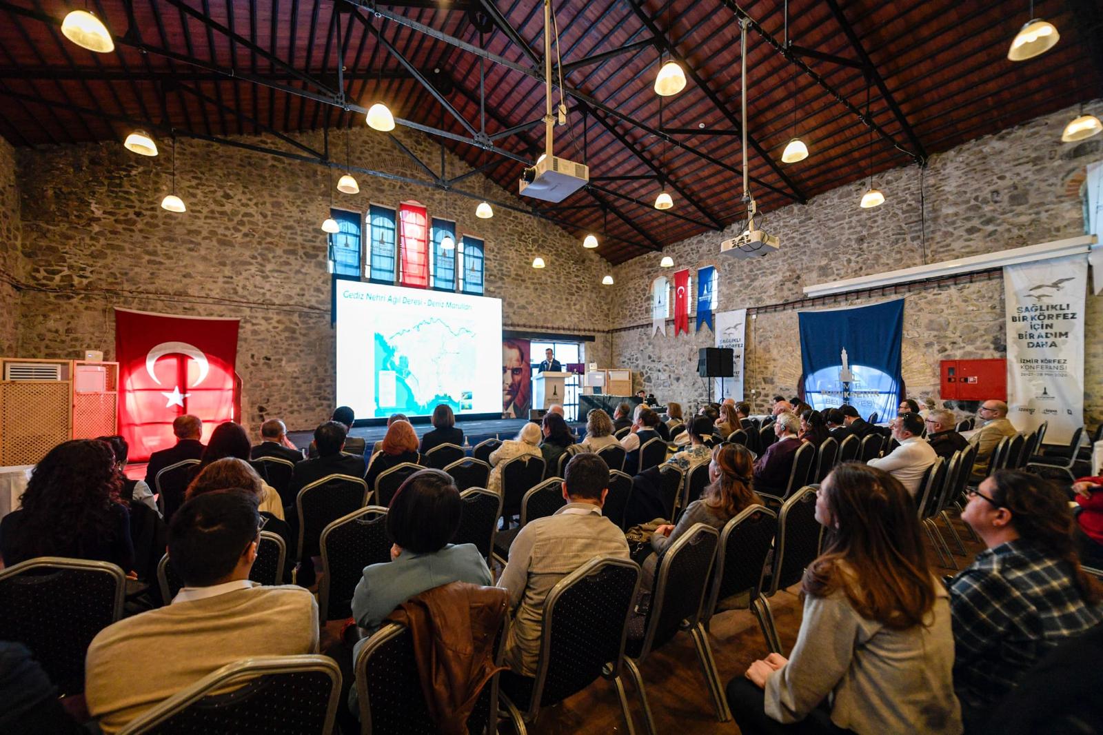 İzmir Büyükşehir Belediyesi tarafından Tarihi Havagazı Fabrikası’nda düzenlenen İzmir Körfez Konferansı'nda körfezin geleceği masaya yatırıldı. Alanında uzman isimlerin de yer aldığı, 28 Mart'a kadar devam edecek İzmir Körfez Konferansı'nda Büyükşehir Belediyesi'nin yaptığı çalışmalar da konuşuldu. İZDENİZ Genel Müdürü Gökhan Marım, İzmir Körfezi'nde yapılan modifiye kil uygulamaları hakkında, İZSU Çevre Koruma ve Kontrol Dairesi Başkanı Güzin Özbaş, İzmir Körfezi’ndeki kirliliğin önlenmesine yönelik yapılan çalışmalar hakkında, İzmir Büyükşehir Belediyesi Çevre Koruma ve Kontrol Dairesi Başkanlığı Deniz Koruma Şube Müdürü Hasan Tuna da hayata geçirdikleri projeler hakkında bilgi verdi.