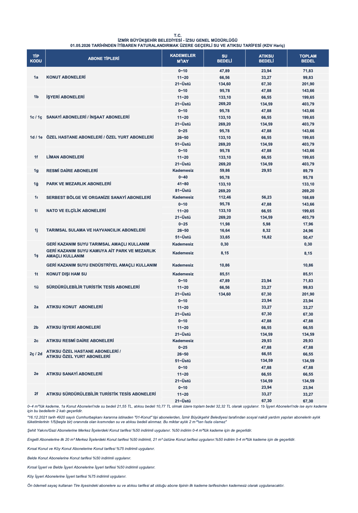 2. Tarifeler ve Abone Hizmetleri Yönetmeliğinde “Sürdürülebilir Turistik Tesis Aboneleri” nin belirlenmesine yönelik değişikliğin uygun görülmesi halinde 01.05.2026 tarihinden geçerli olmak üzere hazırlanan Su ve Atıksu Tarifesi Cetvelinin görüşülerek karara bağlanması.”