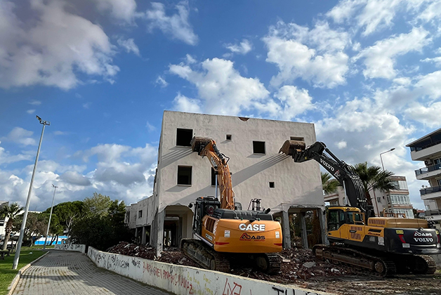 Aliağa Kazım Dirik Mahallesi 31 ada, 1 nolu parsel üzerinde bulunan ve yıllardır atıl durumda olan yapının yıkımına bugün başlandı. Kültür ve Turizm Bakanlığı’ndan gastronomi merkezi ve sosyal kültürel tesis projesiyle ilgili yapılacak yapının işletme ihalesini 25 yıllığına Aliağa Sanatevi A.Ş. kazandı.