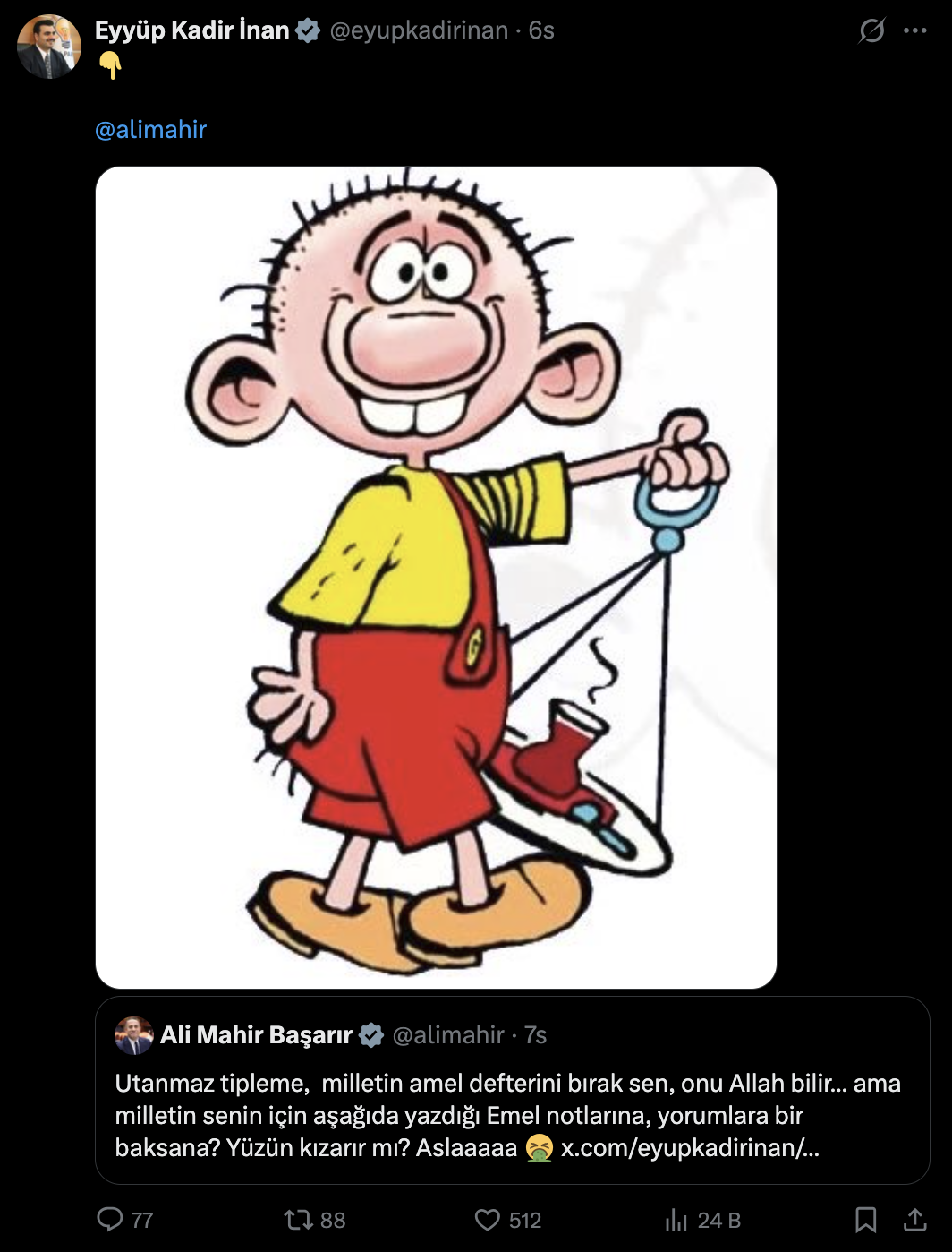 AK Partili İnan, Başarır’a bu kez “Avanak Avni” görseliyle yanıt verdi.