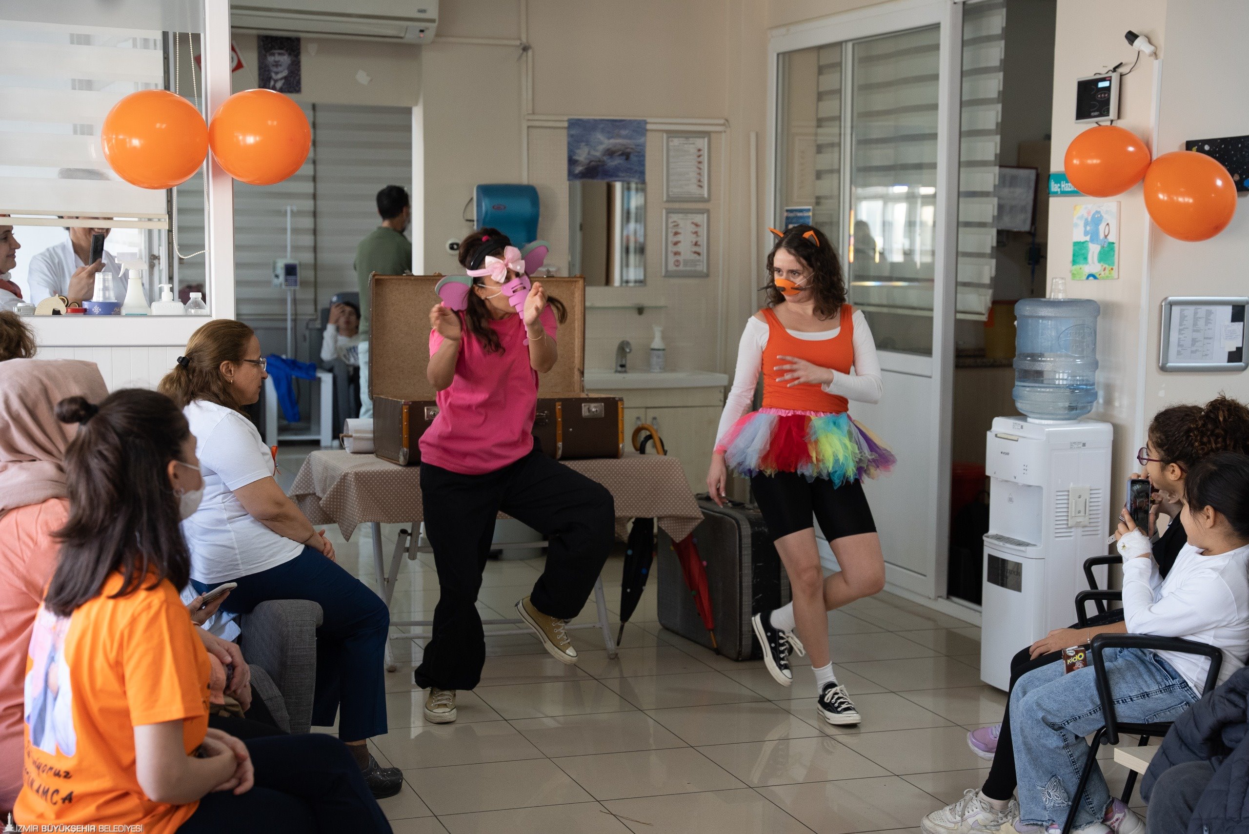 İzmir Büyükşehir Belediyesi Şehir Tiyatroları (İzBBŞT) onkoloji servislerinde tedavi gören çocuklara moral vermek ve sanatla iletişimlerini güçlendirmek için başlattığı “Sanat İyileştirir” projesi kapsamında ziyaretlerini sürdürüyor. İzBBŞT, proje için özel olarak “Pembe Hortum ve Sarman” isimli çocuk oyunu ile “2-8 Kasım Lösemili Çocuklar Haftası” nedeniyle düzenlenen etkinlikler kapsamında Dr. Behçet Uz Çocuk Hastalıkları ve Cerrahisi Eğitim ve Araştırma Hastanesi’ndeki miniklerle bir araya geldi.