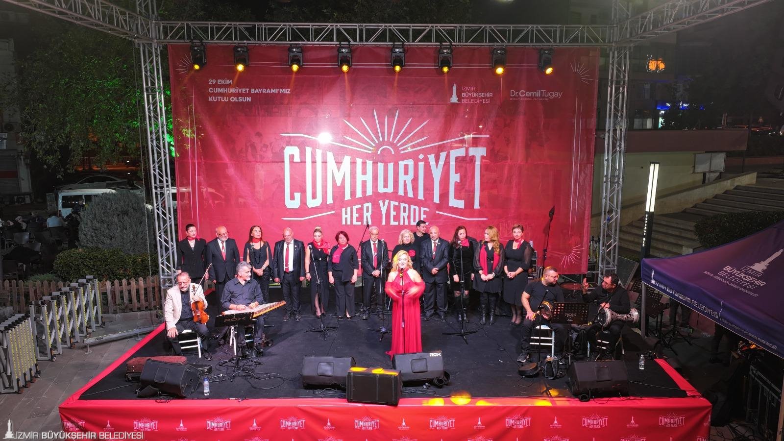 “Cumhuriyet Her Yerde” programı kapsamında 23 Ekim’de kutlamaların adresi Kiraz Yeni Mahalle olacak. 24 Ekim’de Menemen Gazi Mustafa Kemal Mahallesi, 25 Ekim’de Menderes Şehit Astsubay Ömer Halis Demir Parkı, 26 Ekim’de Bergama Ayaskent Mahallesi’nde, 27 Ekim’de Tire Merkez Gölet’te, 28 Ekim’de Selçuk Belevi Mahallesi’nde birbirinden farklı etkinlikler gerçekleştirilecek. 29 Ekim Cumhuriyet Bayramı’nda saat 10.00’da Selçuk Zeytinköy Mahallesi’nde bando gösterisi yapılacak. Saatler 18.00’i gösterdiğinde ise Selçuk Merkez İstasyon Meydanı’nda kortej yürüyüşü, Selçuk Belediyesi Orkestrası Konseri ve çocuklar için eğlenceli etkinlikler olacak. 29 Ekim Cumhuriyet Bayramı’nda ayrıca Dikili merkezde saat 20.00’de düzenlenecek konserler coşkuyu doruğa çıkaracak.