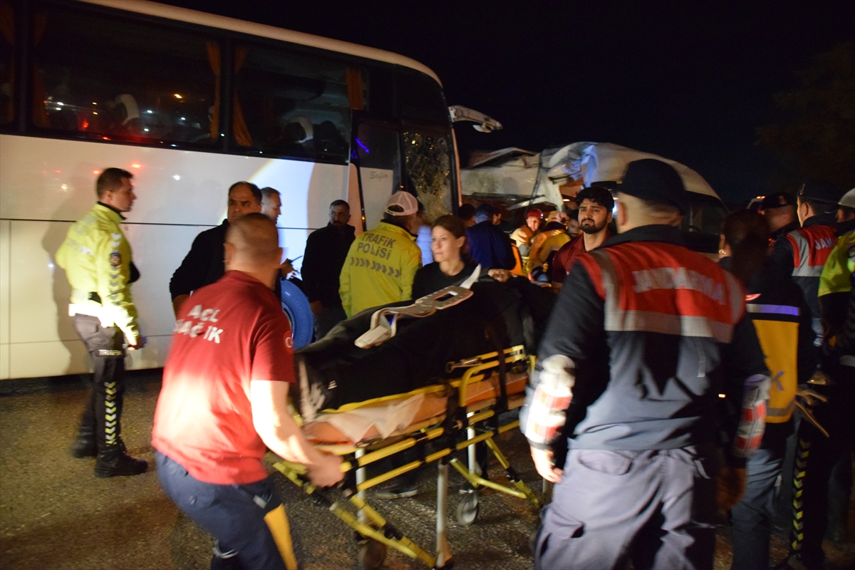 Kazada ilk belirlemelere göre, otobüs ve minibüsteki 2'si ağır 13 kişi yaralandı.