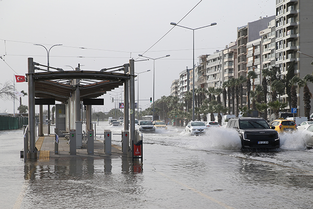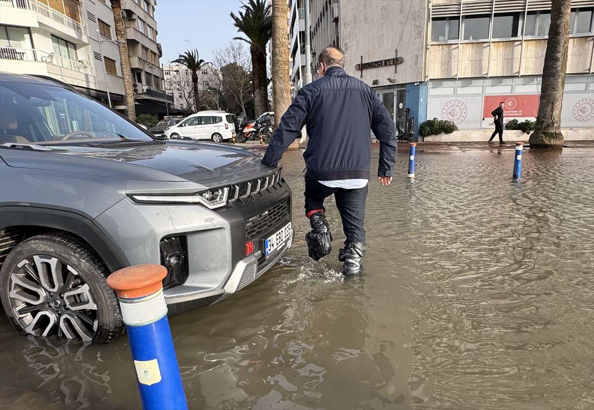 Karşıyaka Vapur İskelesi, Zübeyde Hanım Nikah Sarayı ile Karşıyaka Spor Kulübü Yelken Şube arasındaki bölgede deniz taşması nedeniyle araçlar yolda ilerlemekte güçlük çekti.