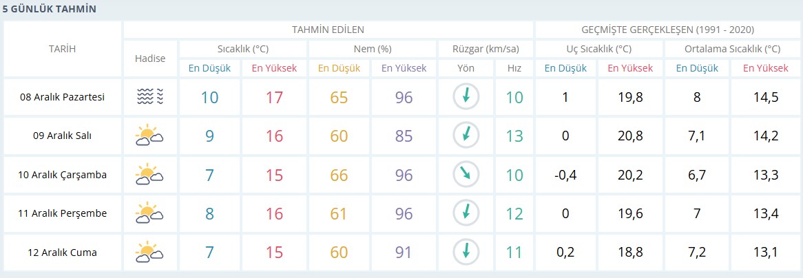5 GÜNLÜK HAVA DURUMU: