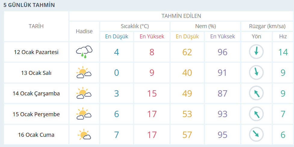 İZMİR 5 GÜNLÜK HAVA RAPORU: