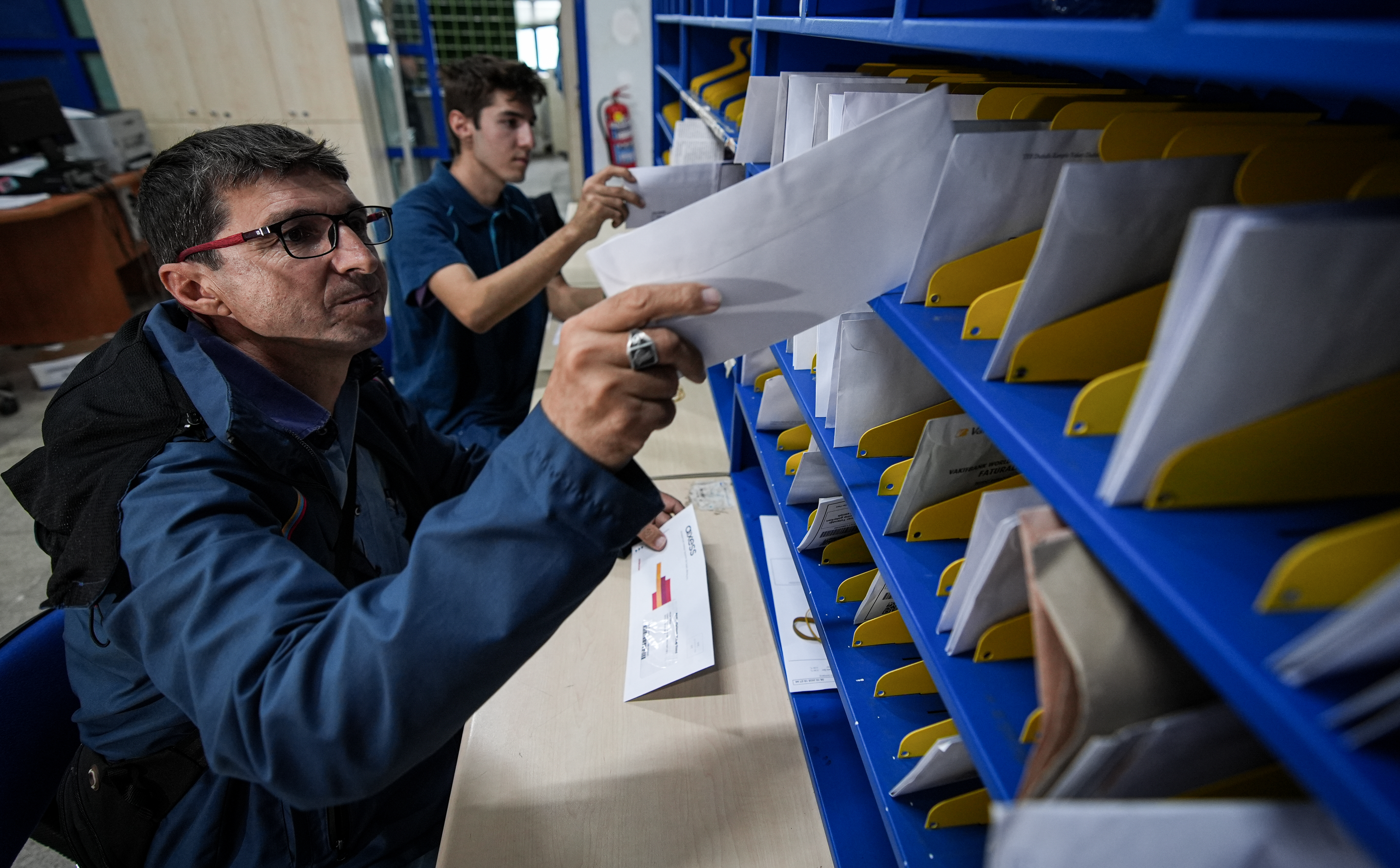 Bayraklı PTT Dağıtım Merkezi'nde çalışan 48 yaşındaki Ramazan Sarıbaş, 20 yıldır sürdürdüğü posta dağıtıcılığı mesleğinde, 2 yıldır aynı kurumda görev yapan oğlu Zülfikar Sarıbaş (20) ile mesai arkadaşlığı yapıyor.