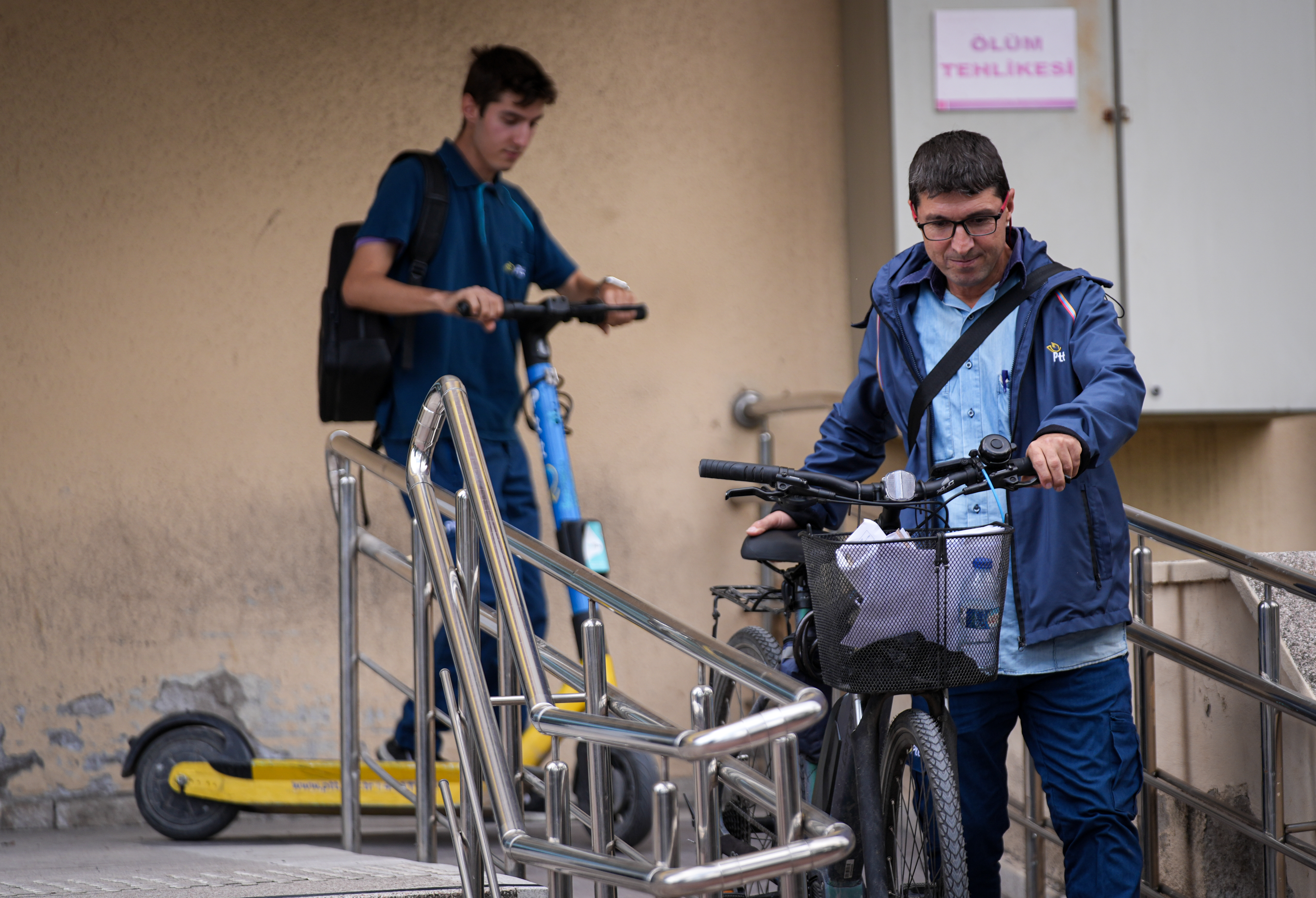 Her sabah evlerinde mesai için birlikte hazırlanan ikili, işe başlamadan önce dağıtım merkezine gidip gün içinde yapacakları işleri planlıyor. Daha sonra dağıtacakları postaları yanına alan baba oğul, bisiklet ve skuter kullanarak görevlerini yerine getiriyor.