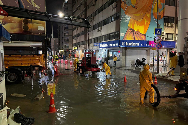 Alsancak Kıbrıs Şehitleri Caddesi’nde sağanak sebebiyle iş yerlerinin ve apartmanların zemin katlarını su bastı. Bir iş hanının deposu da suyla doldu. İş hanının görevlisi Şeyhmus Tarın, her yağmurda aynı sorunu yaşadıklarını söyledi. Tarın, “18 yıldır bu binada çalışıyorum. 18 yıldır halimiz bu. Sabahlara kadar suyu tahliye etmeye çalışıyoruz. Burayı bırakıp evimize gidemiyoruz. Hangi başkan gelirse gelsin böyle. 2 sene o de sular tavana kadar dolmuştu. Yağmur yağdığında korkuyorum. Durumumuz içler acısı. Bir çözüm bekliyoruz. Her sene aynı şeyi yaşamaktan bıktık” dedi.