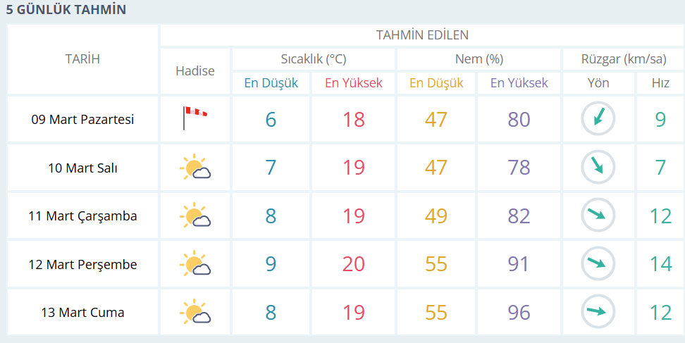 Cuma günü ise 19 derece olacak. Hafta boyunca İzmir güneşli olacak.