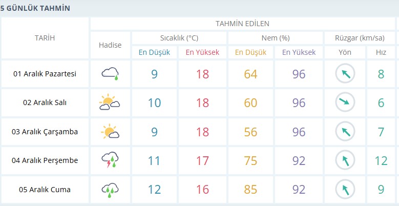 Salı günü ise parçalı bulutlu ve 18 derece olacak. Çarşamba günü de termometreler 18 dereceyi gösterecek, gökyüzü az bulutlu olacak.