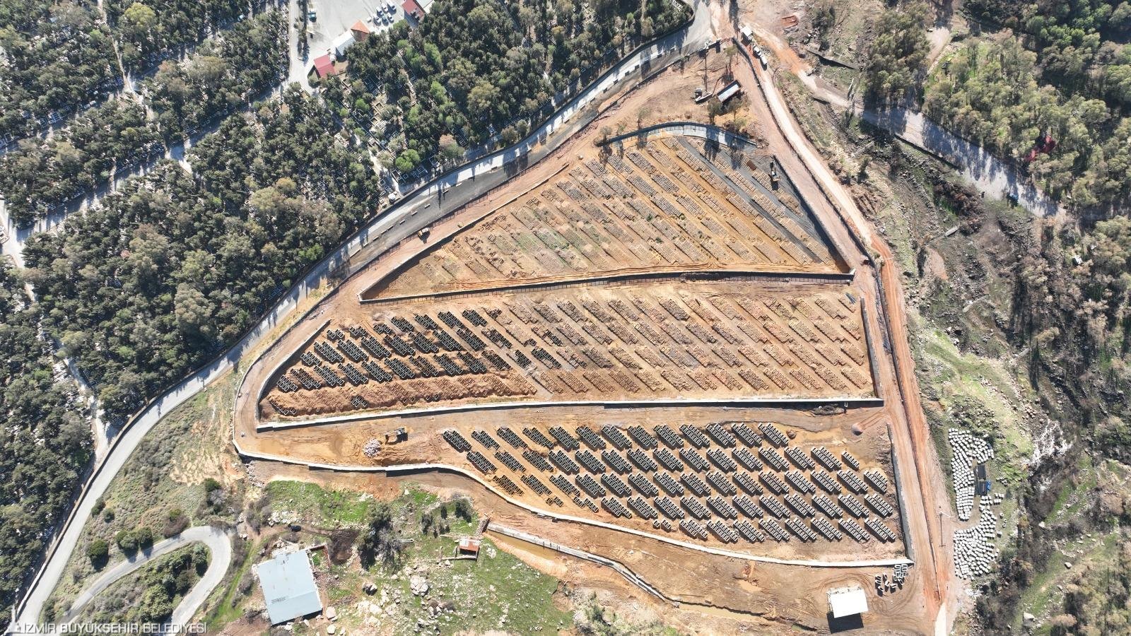İzmir Büyükşehir Belediyesi ilçe merkezinde mezarlıkların gömü kapasitesinin dolması, nüfus artışı, göç gibi nedenlerle yaşanan yoğunluğa çözüm üretmek ve kentin mezar ihtiyacını karşılamak için çalışmalarını sürdürüyor. Her yıl en az 200 bin metrekare yeni mezarlık alanına ihtiyaç duyulan kentte son iki yılda yaklaşık 70 futbol sahası büyüklüğünde 487 bin metrekarelik mezarlık alanı kazandırıldı.