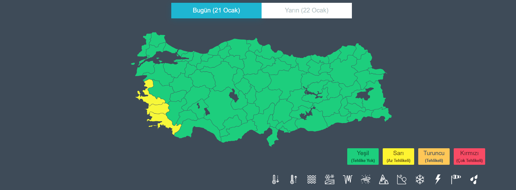 Meteoroloji Genel Müdürlüğü (MGM) 21 Ocak tarihli günlük hava tahmin raporunu yayımladı.
