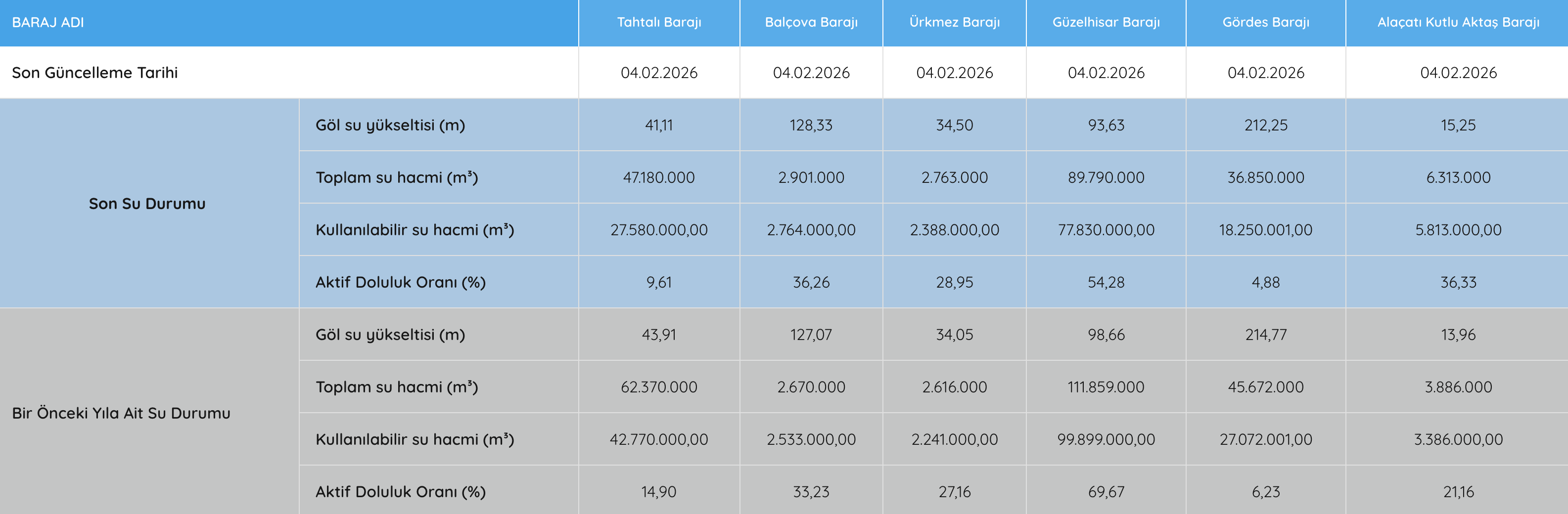 (4 Şubat 2026 Barajların Durumu)