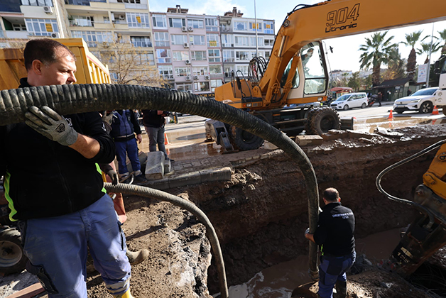 İzmir Büyükşehir Belediyesi İZSU Genel Müdürlüğü, Konak’ta İnönü Caddesi ile 200 Sokak kavşağında öğle saatlerinde meydana gelen ana isale hattı arızasına hızlı şekilde müdahale etti. Kentin içme suyu iletiminde kritik öneme sahip 1,4 metre çapındaki içme suyu beton borusunda oluşan arızanın, boru birleşim noktasından kaynaklandığı belirlendi. Arızanın giderilmesi ve olası daha büyük altyapı risklerinin önüne geçilmesi amacıyla hat kontrollü şekilde devre dışı bırakıldı.