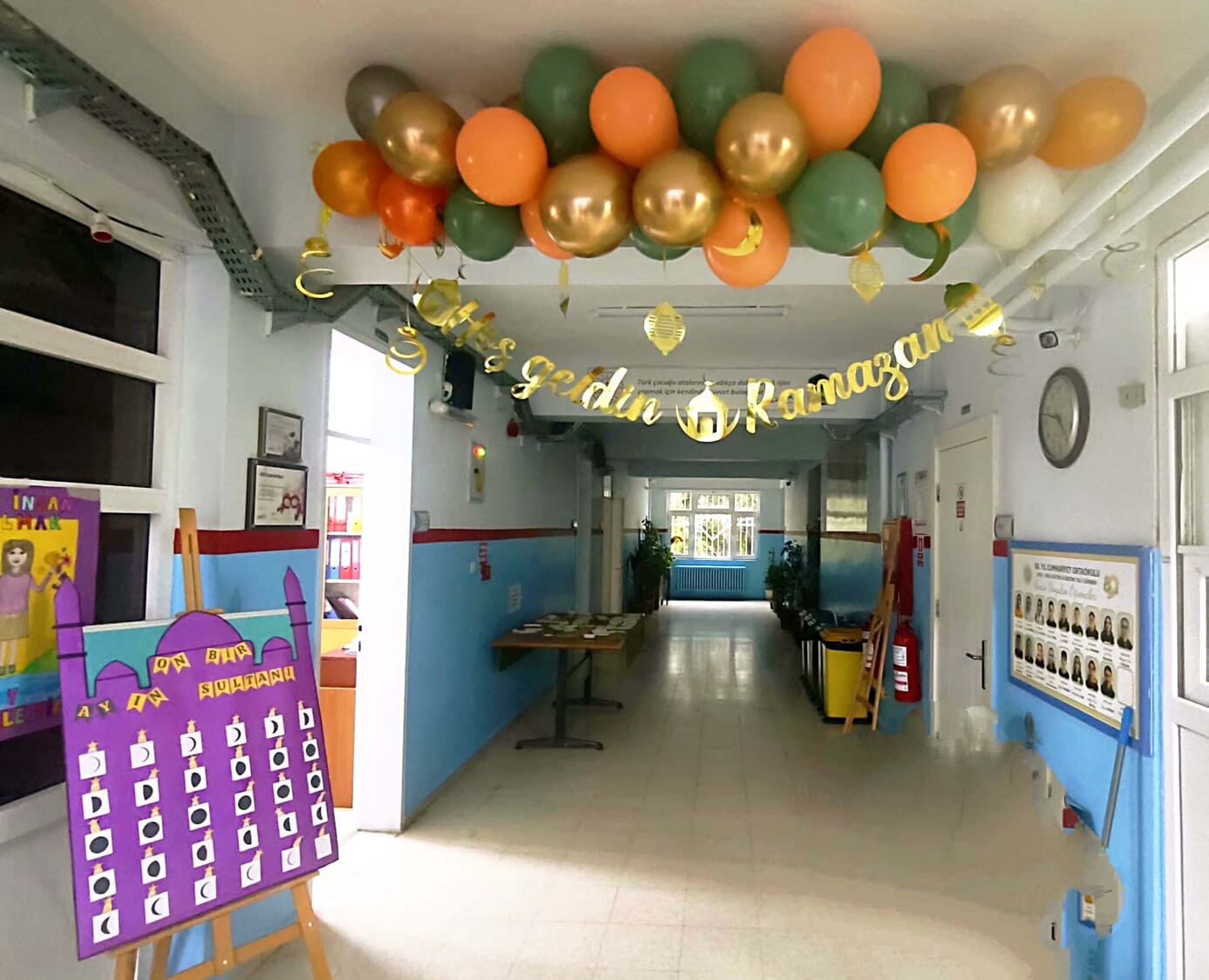 İzmir'de ramazan ayı boyunca 'Maarifin Kalbinde Ramazan' temasıyla öğrencilerin paylaşma bilincini geliştirmeye, yardımlaşma ve dayanışma duygularını güçlendirmeye yönelik etkinlikler planlandı. Öğretmen ve öğrenciler özverili çalışmalarıyla okul sınıflarını ve koridorları ramazanın manevi iklimini yansıtan anlamlı pano ve süslemeler hazırladı. Türkiye Yüzyılı Maarif Modeli çerçevesinde şekillenen 'Erdem-Değer-Eylem' vizyonu doğrultusunda öğrenciler; paylaşmanın, sabrın, yardımlaşmanın ve kardeşliğin önemini yeniden hatırlayarak değerlerimizle güçlü bir bağ kurdu. Geleneksel ramazan etkinlikleriyle zenginleşen bu süreçte, okul koridorları sadece süslenmekle kalmadı; aynı zamanda birlik ve beraberliğin hissedildiği, sevgiyle yoğrulmuş bir gönül atmosferine dönüştü. Ramazanın huzuru ve coşkusu, minik yüreklerde yankılanırken öğrencilerimiz hem kültürel mirasımızı tanıdı hem de manevi değerlerimizi yaşayarak öğrenmenin mutluluğunu yaşadı.
