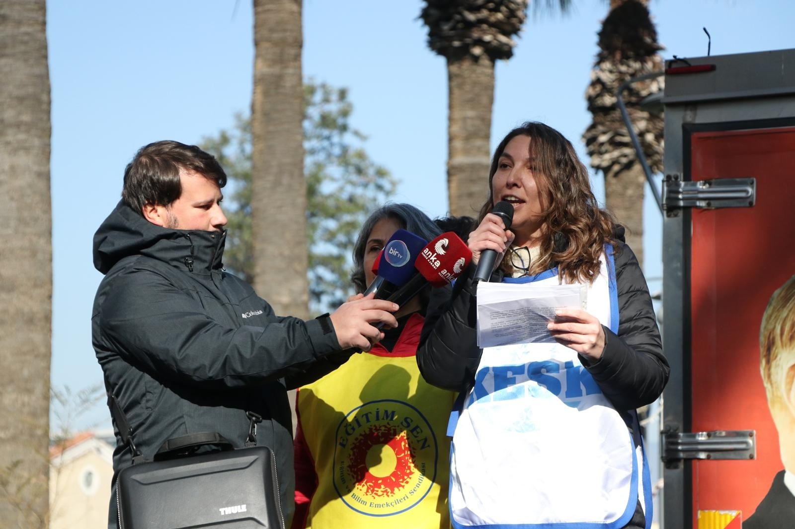 Açıklamayı KESK İzmir Dönem Sözcüsü Başak Edge Gürkan okudu.
