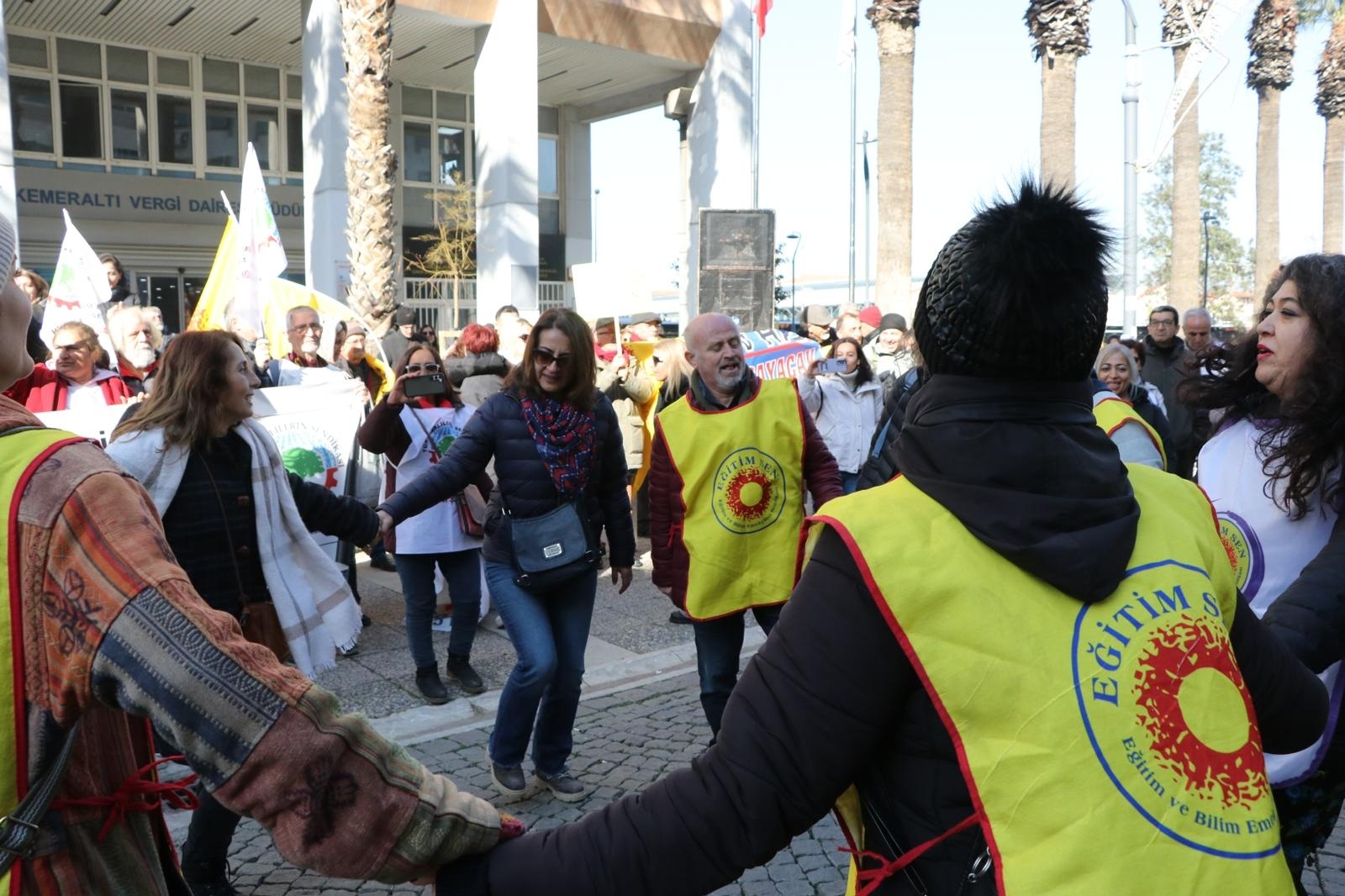 Yıllardır bizi yoksullaştıranlar bir avuç azınlığı zenginleştiriyor, hem de bunu bizim vergilerimizle, bizim soframızdan çalınanlarla yapıyorlar; üstelik antidemokratik uygulamalarla, baskıyla, yasakla, korkuyla bu düzene razı olmamızı istiyorlar, bizleri biat eden modern kölelere dönüştürmeye çalışıyorlar. Bir avuç azınlığın lehine olan bu tabloyu biz yaratmadık; biz kapıkulu değiliz, biz kamu emekçisiyiz. Tüm baskılara karşı emeğimizin ve irademizin değersizleştirilmesine dur demenin zamanıdır. İşte bunun için maaşlarımızda hemen şimdi, Ocak ayından itibaren ek yüzde 20 artış yapılmasını, 2023 Temmuzdan itibaren hayata geçirilen ilave seyyanen ödeneğin taban maaşlarımıza yansıtılmasını, verilen sözlerin gereğinin yerine getirilmesini; tüm kamu emekçilerine 3600 ek gösterge verilmesini, ilave seyyanen ödenek tutarının mevcut emekli aylıklarına eklenmesini, mülakatın kaldırılmasını istiyoruz; Haziran ayına kadar 4688 sayılı yasa başta olmak üzere mevcut mevzuatın grevli toplu pazarlık hakkımızın önündeki engellerin kaldırılması başta olmak üzere evrensel sendikal normlarla uyumlu hale getirilmesini, en geç Haziran ayı sonunda gerçek bir toplu pazarlık masası kurulmasını, en düşük kamu emekçisi maaşının yoksulluk sınırı üzerine çıkarılmasını, kira, kreş ve yol desteği istiyoruz.