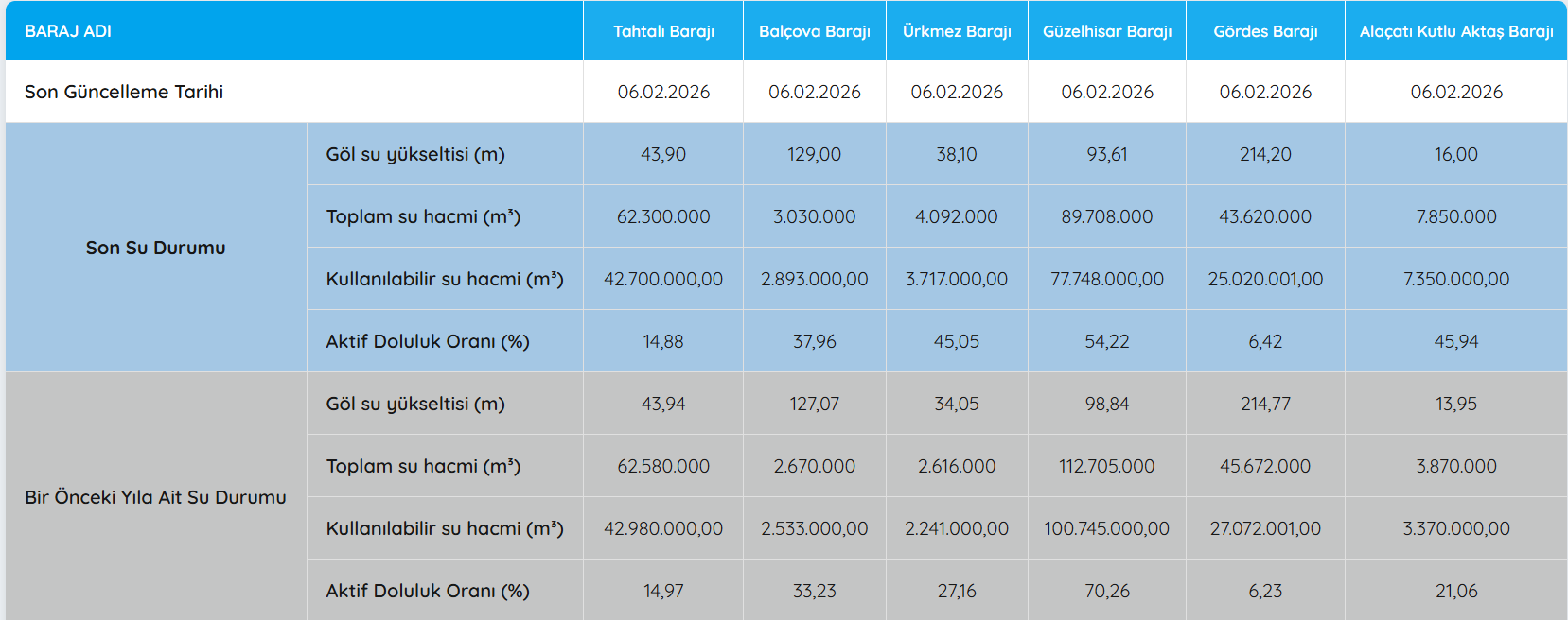 Gördes Barajı’nda 2025 yılında aynı tarihte doluluk oranı yüzde 6,23 olarak kayıtlara geçmişti.