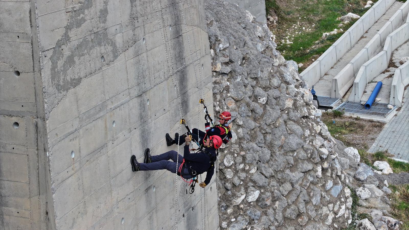 Eğitim Çavuşu Mesut Topal ise 15 metre yükseklikteki kuleden iple erişim tekniklerini anlattı. Topal, “Mesleğe yeni başlayan itfaiyeci arkadaşlarımıza basit istasyon kurulumu, yük dağılımı istasyon kurulumu, kullandığımız iplerin özellikleri hakkında eğitim veriyoruz. Teorik eğitimlerin ardından uygulamaya geçiyoruz. 15 metrelik kuleden aşağıya seri şekilde iniş ve tekrar yukarı tırmanma pratiği yapıyoruz. İpte asılı kalmış kişileri kurtarma, vadide, uçurumda, kuyularda kurtarılmayı bekleyen insanları, hayvanları kurtarma tekniklerini öğretiyoruz. Kentsel arama kurtarma, trafik kazalarında kurtarma ve iple erişim eğitimlerinin ardından arkadaşlarımız yeterli donanıma sahip oluyorlar. Biz de doğru ve eksiksiz bilgi vermek için elimizden geleni yapıyoruz. Bu sürecin sonunda umuyoruz ki arkadaşlarımız olaylara müdahale edecek yeterliliğe sahip olacak” diye konuştu.