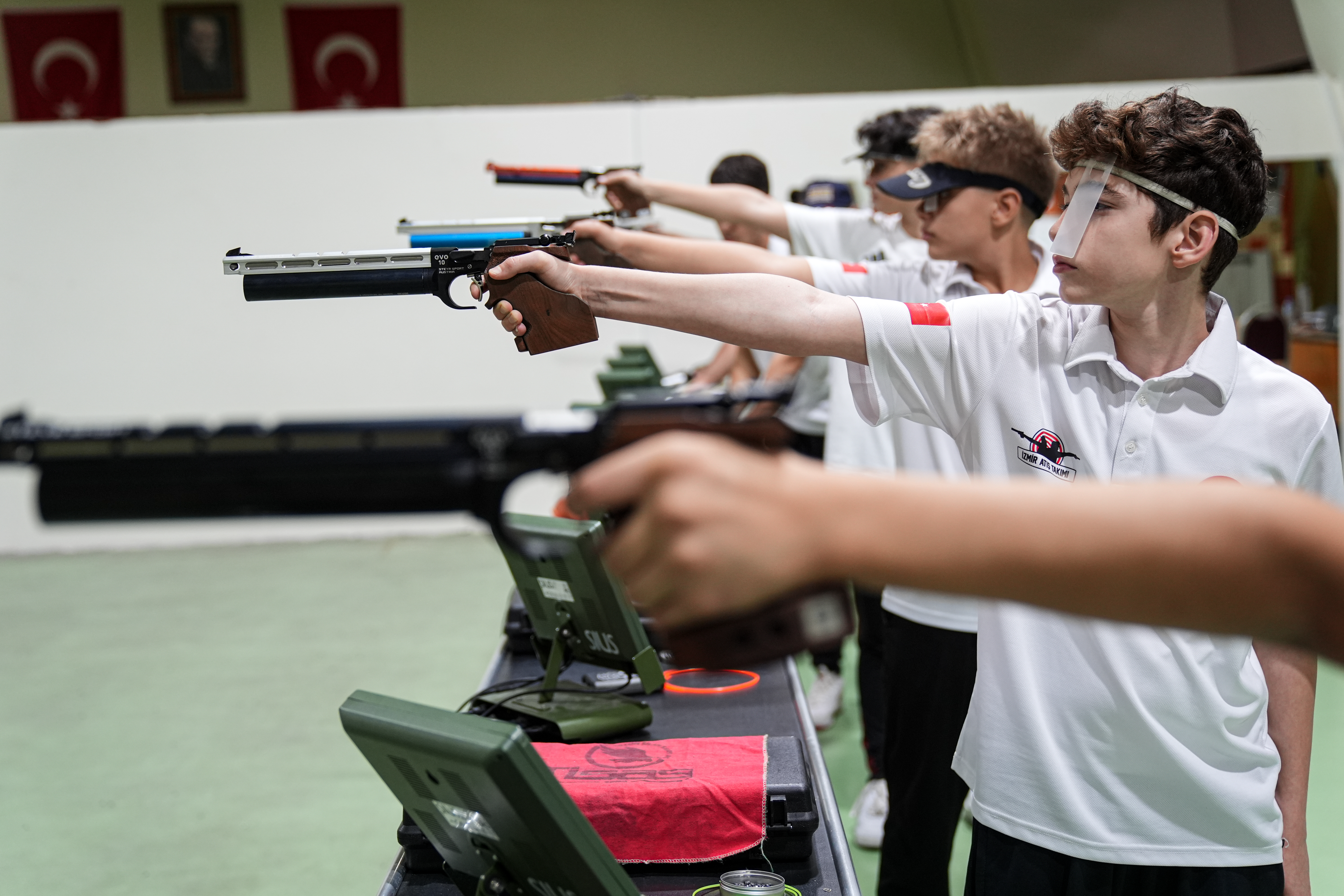 Konak ilçesindeki atıcılık merkezinde antrenmanlarına devam eden genç sporcular, Paris 2024 Olimpiyat Oyunları'nda 10 metre havalı tabanca karışık takım kategorisinde gümüş madalya kazanan milli sporcu Yusuf Dikeç'in açtığı yolda olimpiyatlara gitmeyi hedefliyor.