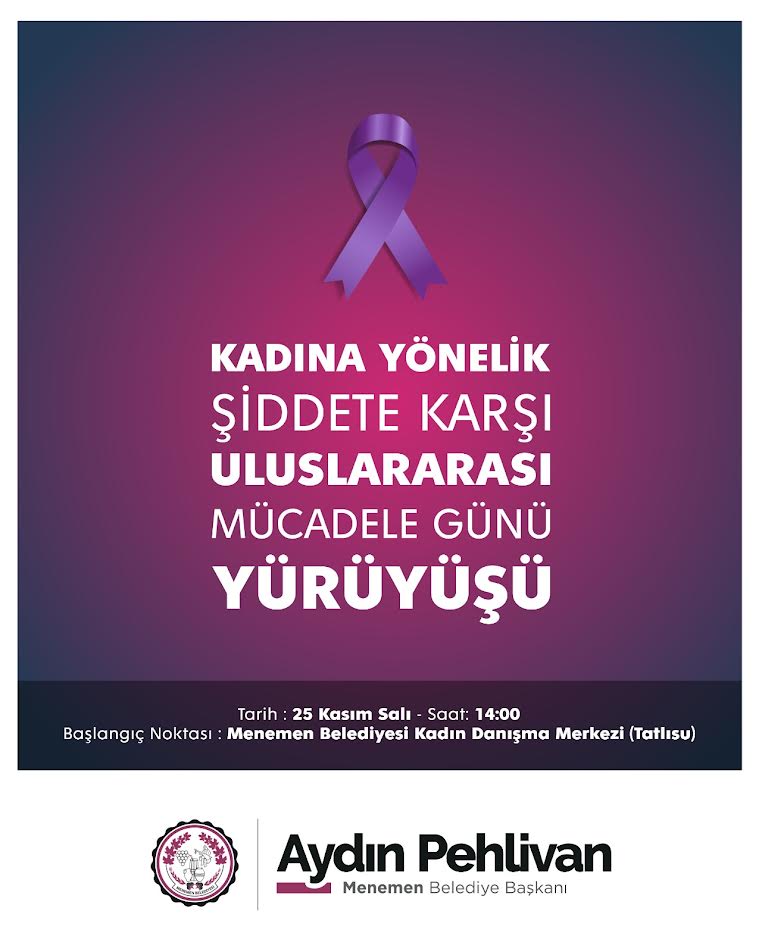 Menemen Belediyesi, toplumun en önemli gündem maddelerinden olan kadına şiddet konusunda, 25 Kasım Kadına Yönelik Şiddete Karşı Uluslararası Mücadele Günü kapsamında önemli etkinliklere imza atacak. Program, 25 Kasım günü saat 14.00'te Menemen Belediyesi Kadın Danışma Merkezi önünden farkındalık yürüyüşü ile başlayacak. Kadına şiddete karşı pankartlar, dövizler ve sloganlarla gerçekleştirilecek olan yürüyüş, Menemen Belediyesi önünde son bulacak.