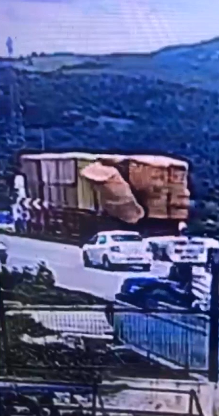 Çevredeki bir güvenlik kamerası olay anını kaydetti. Görüntülerde, Avcı’nın yol kenarında yürüdüğü sırada yanından geçen tırdaki balyaların üzerine düşmesi ve balyaların altında kalması yer aldı. (AA)