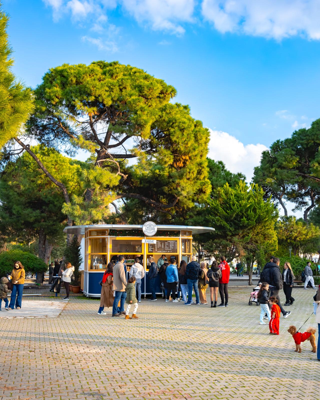 İzmirli Kahve; Konak, Bornova ve Fahrettin Altay metro noktaları, Kültürpark eski lunapark ve Kaskatlı Havuz yakını, Fuar İzmir, Alsancak Tarihi Havagazı Fabrikası Kültür Merkezi, Buca’da Kasaplar Meydanı ve Fırat Yılmaz Çakıroğlu Parkı, Ahmet Piriştina Kent Arşivi Müzesi (APİKAM), Şato ve Bostanlı noktalarıyla hizmet veriyor.